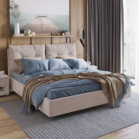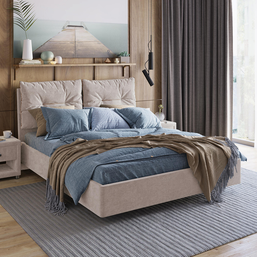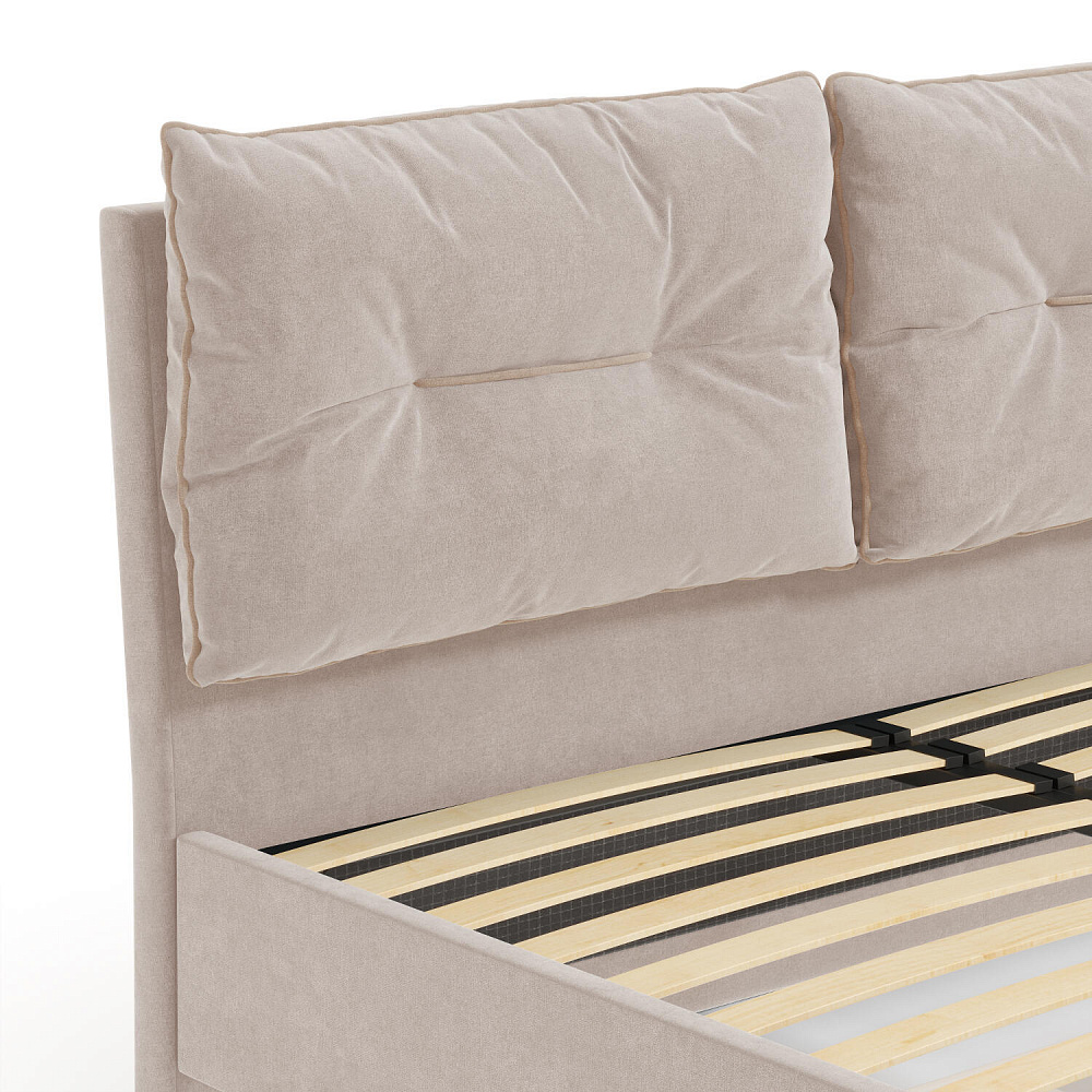 Кровать «Санремо» со съёмными подушками на изголовье — уютнейший вариант оформления спальни. Контрастный кант и внутренний шов придают подушкам дополнительный объем. При необходимости подушки легко снимаются, ведь они крепятся к изголовью на липучках. «Санремо» подарит невероятный комфорт и уют своим владельцам.