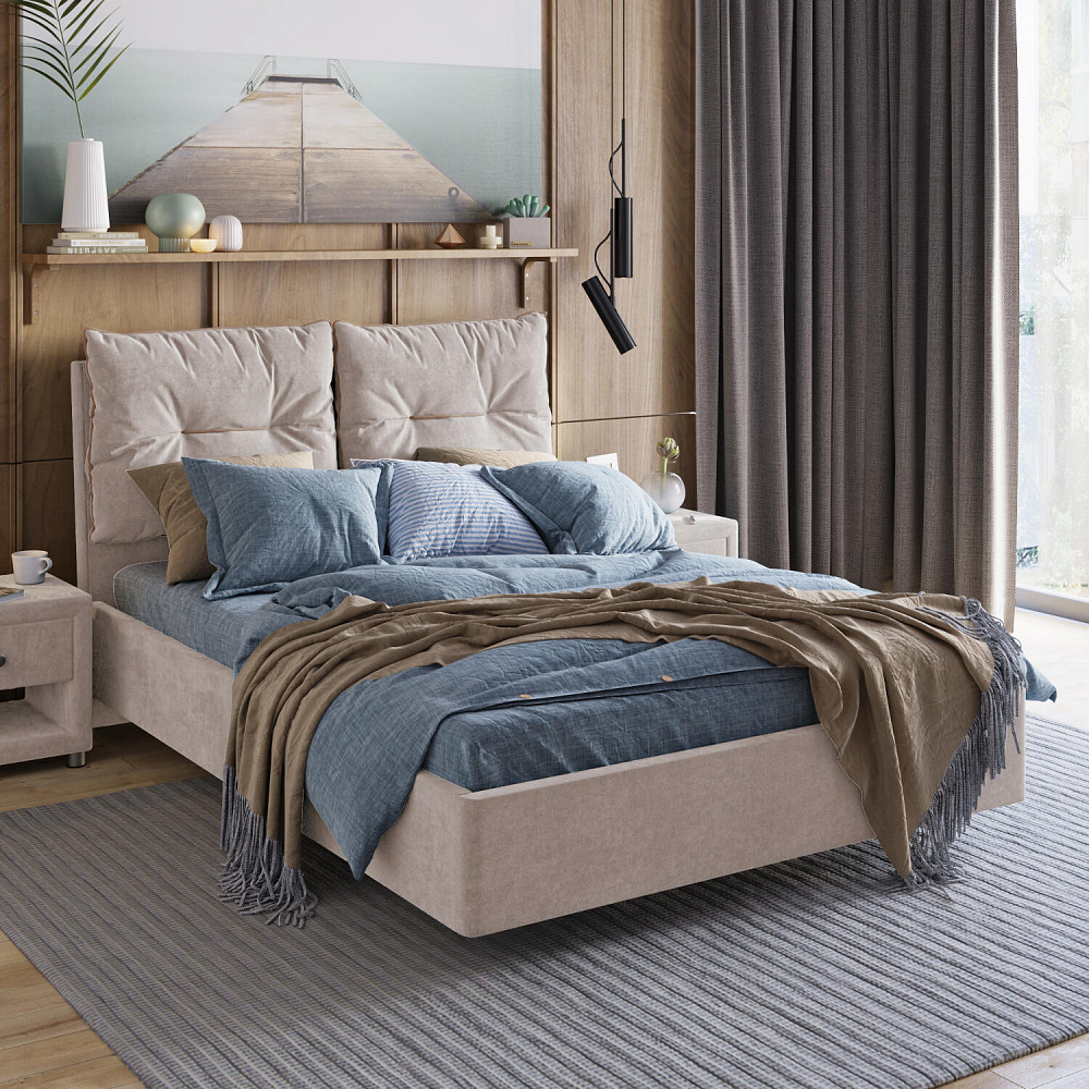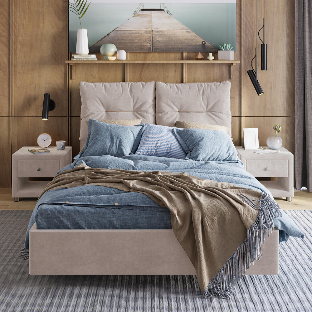 Кровать «Санремо» со съёмными подушками на изголовье — уютнейший вариант оформления спальни. Контрастный кант и внутренний шов придают подушкам дополнительный объем. При необходимости подушки легко снимаются, ведь они крепятся к изголовью на липучках. «Санремо» подарит невероятный комфорт и уют своим владельцам.