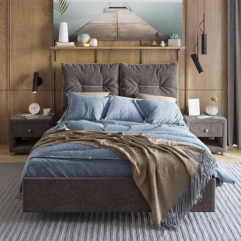 Кровать «Санремо» со съёмными подушками на изголовье — уютнейший вариант оформления спальни. Контрастный кант и внутренний шов придают подушкам дополнительный объем. При необходимости подушки легко снимаются, ведь они крепятся к изголовью на липучках. «Санремо» подарит невероятный комфорт и уют своим владельцам.