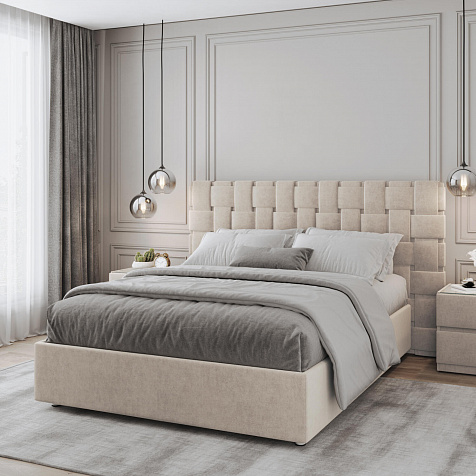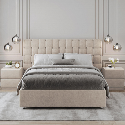 Мягкая кровать «Брианна» станет центральным местом современной спальни благодаря уникальному дизайну. Высокое мягкое изголовье в виде плетеных линий поможет разбавить привычный интерьер спальни и сделает комфортную зону для чтения и просмотра кино. Кровать поможет сэкономить пространство комнаты за счет вместительного бельевого короба под решеткой. Надежное основание и правильно подобранный матрас обеспечат необходимый уровень для здорового сна и отдыха.