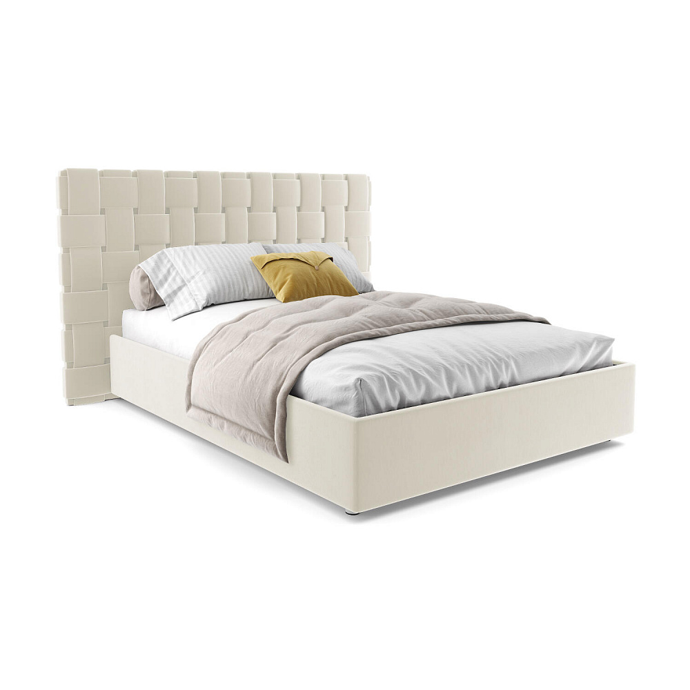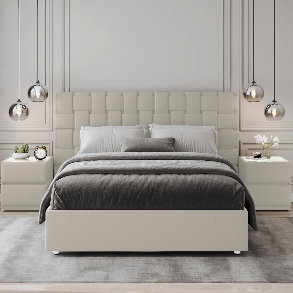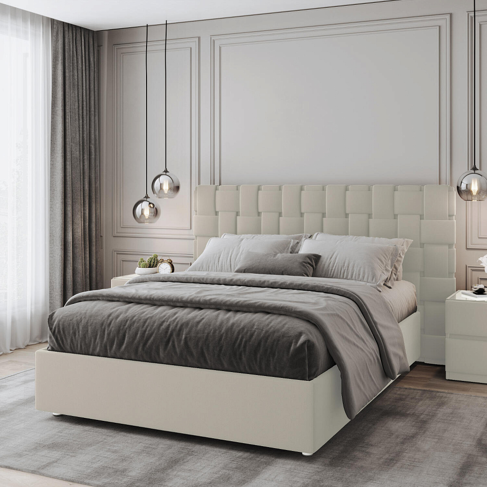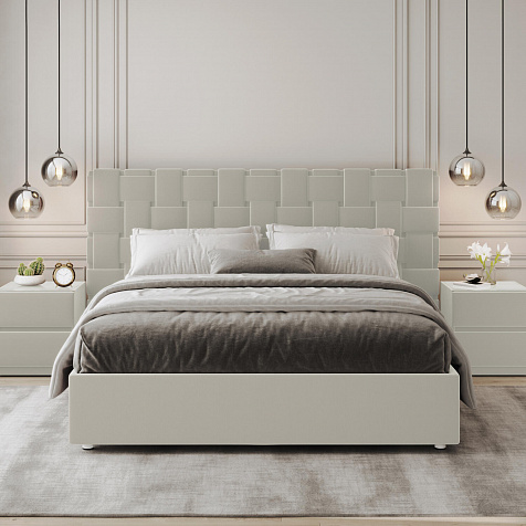 Мягкая кровать «Брианна» станет центральным местом современной спальни благодаря уникальному дизайну. Высокое мягкое изголовье в виде плетеных линий поможет разбавить привычный интерьер спальни и сделает комфортную зону для чтения и просмотра кино. Кровать поможет сэкономить пространство комнаты за счет вместительного бельевого короба под решеткой. Надежное основание и правильно подобранный матрас обеспечат необходимый уровень для здорового сна и отдыха.