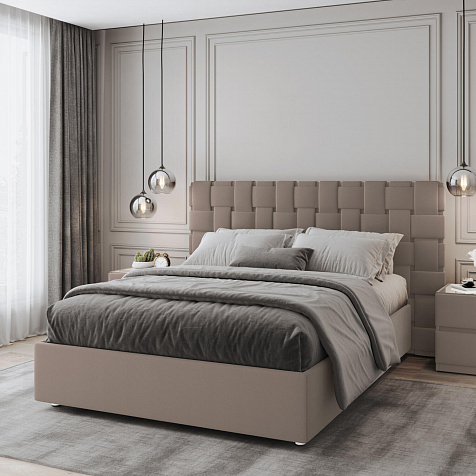 Мягкая кровать «Брианна» станет центральным местом современной спальни благодаря уникальному дизайну. Высокое мягкое изголовье в виде плетеных линий поможет разбавить привычный интерьер спальни и сделает комфортную зону для чтения и просмотра кино. Кровать поможет сэкономить пространство комнаты за счет вместительного бельевого короба под решеткой. Надежное основание и правильно подобранный матрас обеспечат необходимый уровень для здорового сна и отдыха.