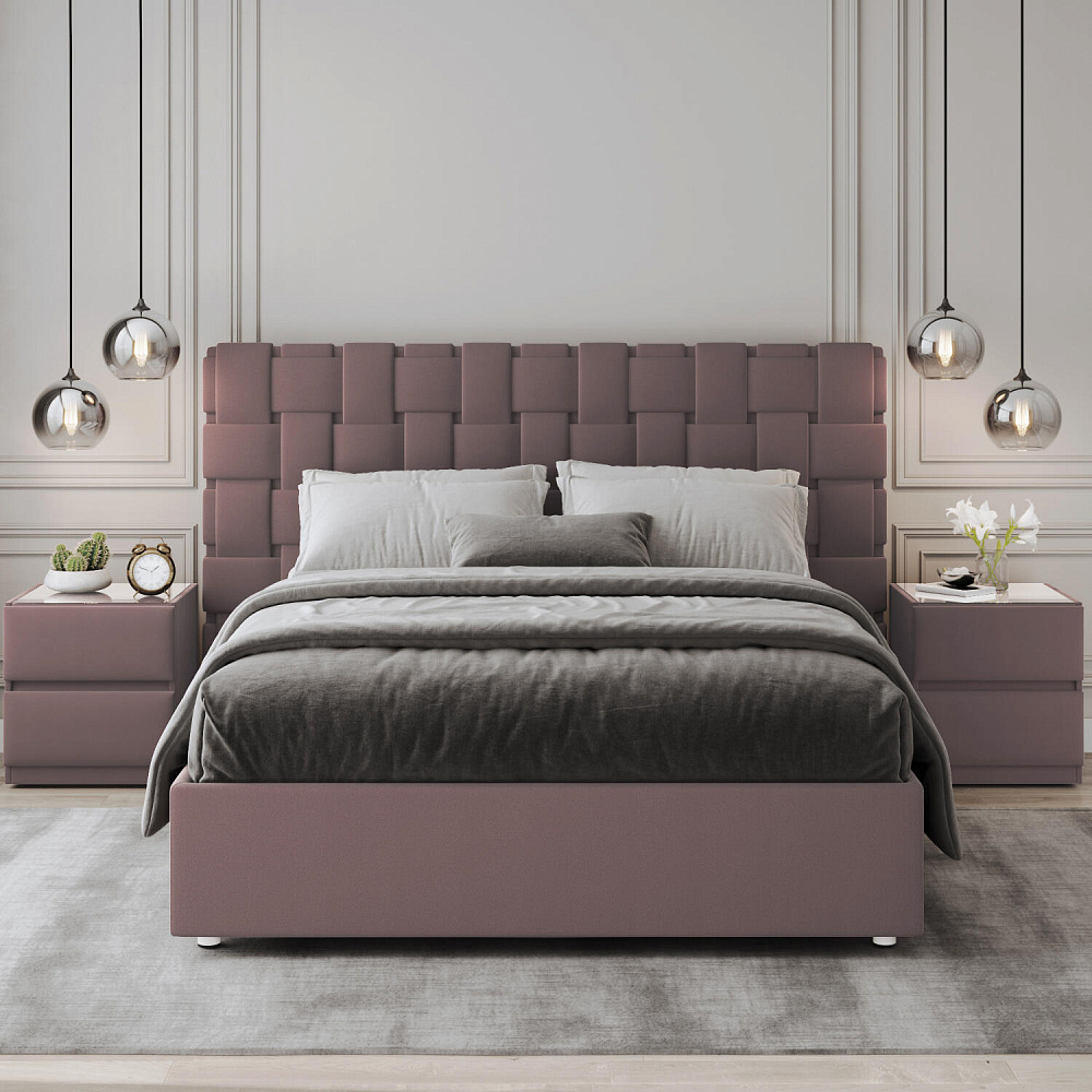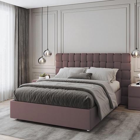 Мягкая кровать «Брианна» станет центральным местом современной спальни благодаря уникальному дизайну. Высокое мягкое изголовье в виде плетеных линий поможет разбавить привычный интерьер спальни и сделает комфортную зону для чтения и просмотра кино. Кровать поможет сэкономить пространство комнаты за счет вместительного бельевого короба под решеткой. Надежное основание и правильно подобранный матрас обеспечат необходимый уровень для здорового сна и отдыха.