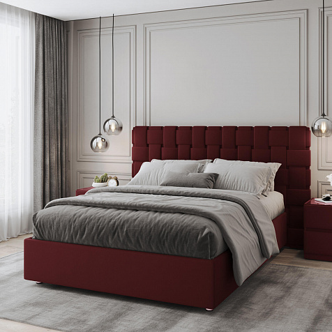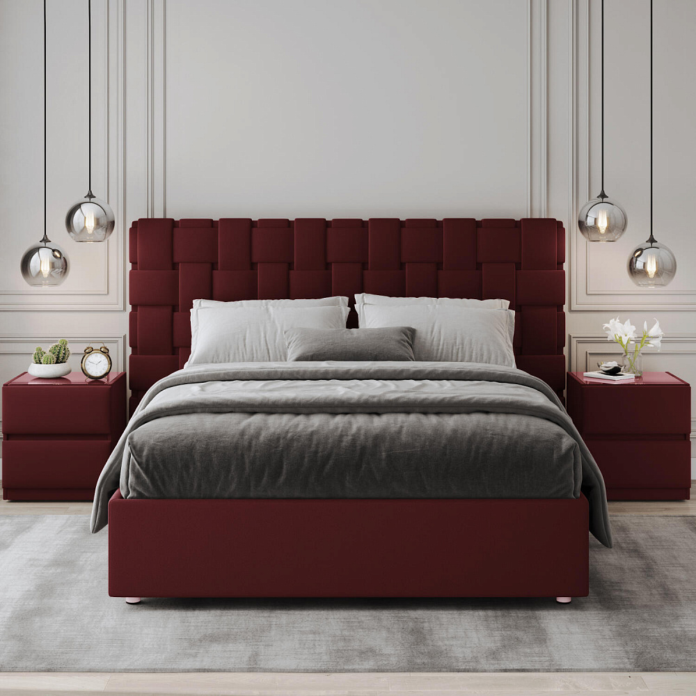 Мягкая кровать «Брианна» станет центральным местом современной спальни благодаря уникальному дизайну. Высокое мягкое изголовье в виде плетеных линий поможет разбавить привычный интерьер спальни и сделает комфортную зону для чтения и просмотра кино. Кровать поможет сэкономить пространство комнаты за счет вместительного бельевого короба под решеткой. Надежное основание и правильно подобранный матрас обеспечат необходимый уровень для здорового сна и отдыха.