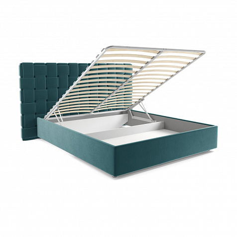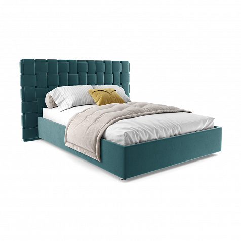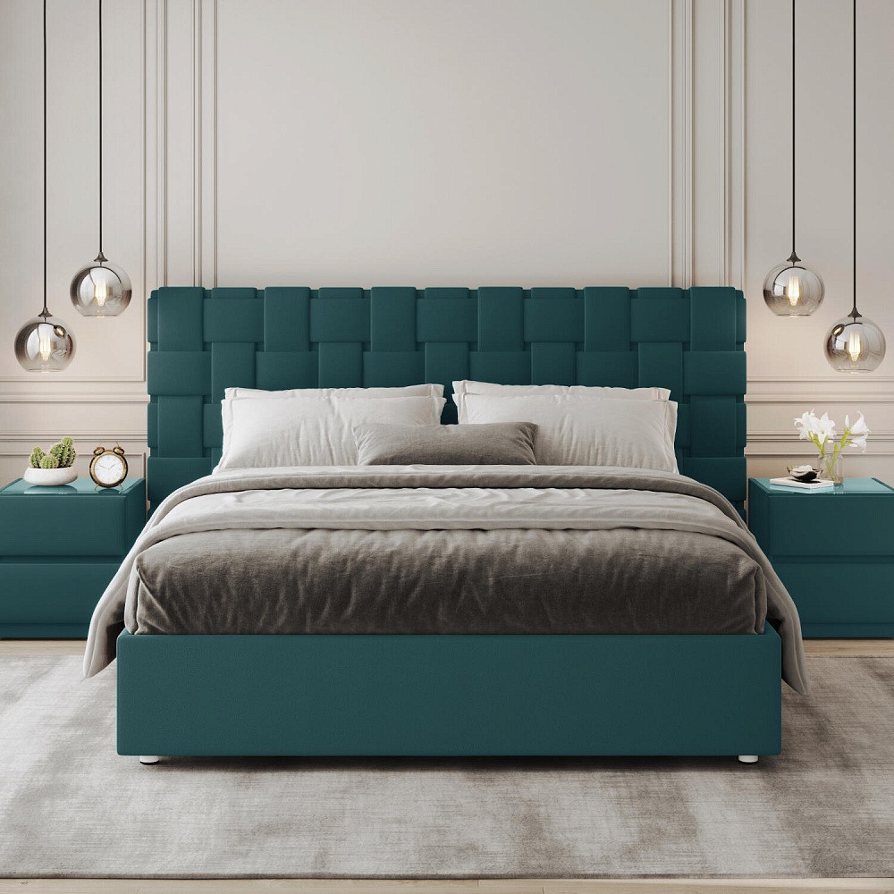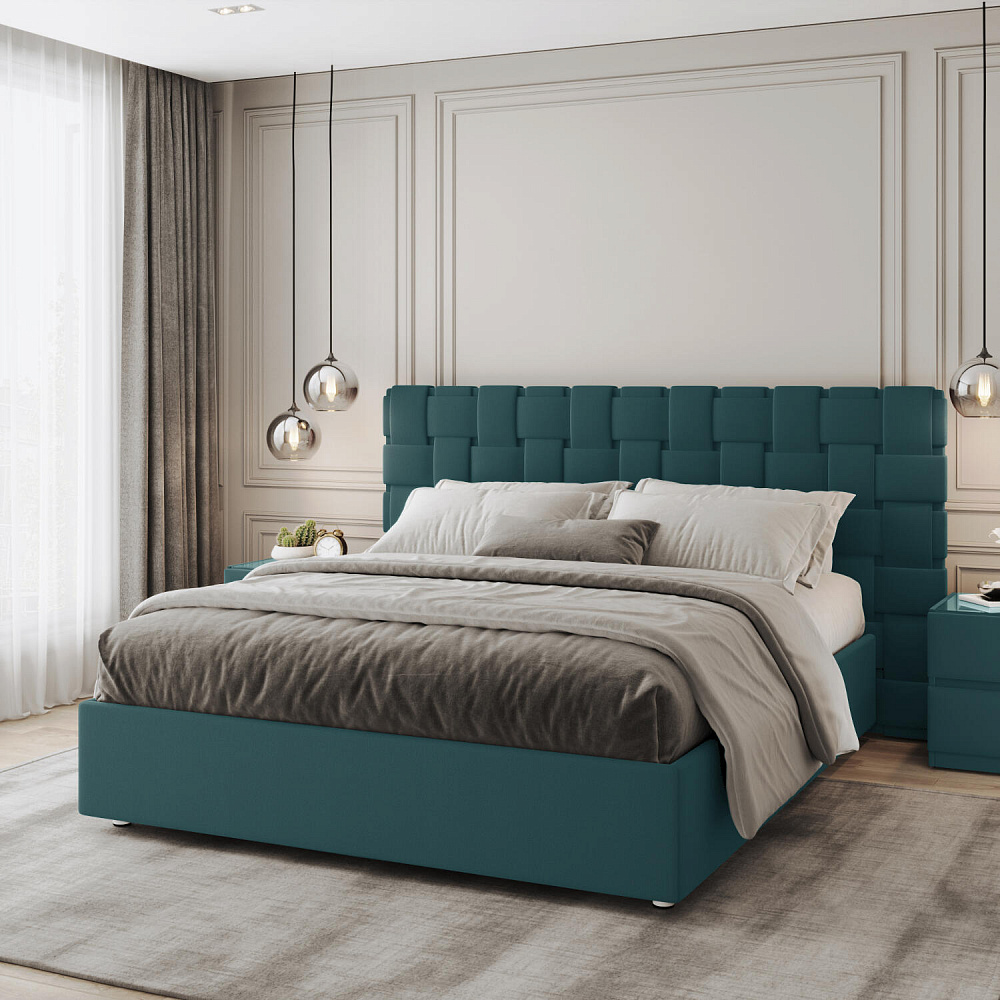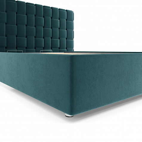 Мягкая кровать «Брианна» станет центральным местом современной спальни благодаря уникальному дизайну. Высокое мягкое изголовье в виде плетеных линий поможет разбавить привычный интерьер спальни и сделает комфортную зону для чтения и просмотра кино. Кровать поможет сэкономить пространство комнаты за счет вместительного бельевого короба под решеткой. Надежное основание и правильно подобранный матрас обеспечат необходимый уровень для здорового сна и отдыха.