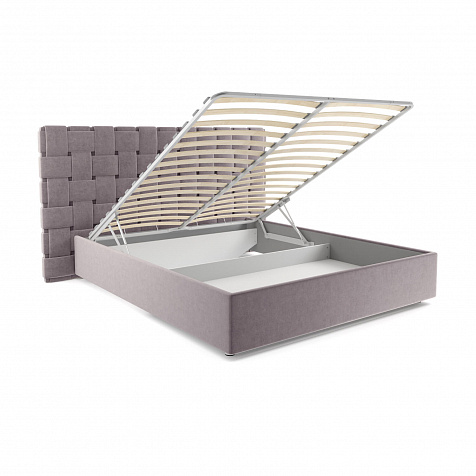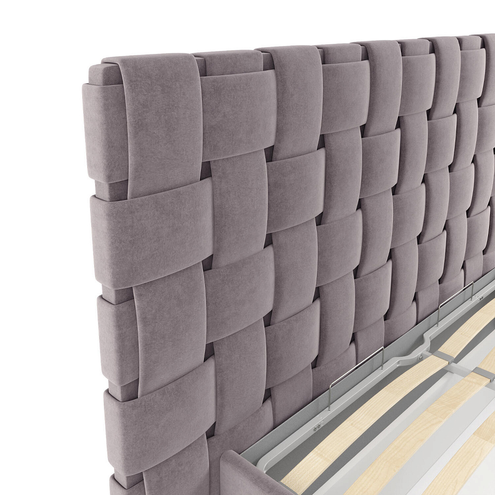 Мягкая кровать «Брианна» станет центральным местом современной спальни благодаря уникальному дизайну. Высокое мягкое изголовье в виде плетеных линий поможет разбавить привычный интерьер спальни и сделает комфортную зону для чтения и просмотра кино. Кровать поможет сэкономить пространство комнаты за счет вместительного бельевого короба под решеткой. Надежное основание и правильно подобранный матрас обеспечат необходимый уровень для здорового сна и отдыха.