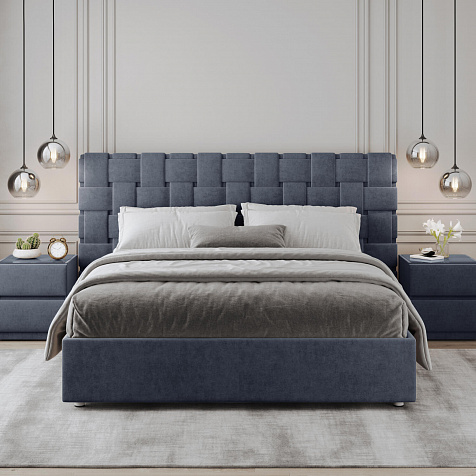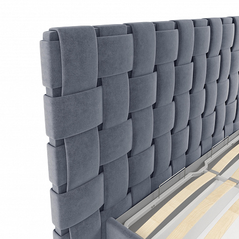 Мягкая кровать «Брианна» станет центральным местом современной спальни благодаря уникальному дизайну. Высокое мягкое изголовье в виде плетеных линий поможет разбавить привычный интерьер спальни и сделает комфортную зону для чтения и просмотра кино. Кровать поможет сэкономить пространство комнаты за счет вместительного бельевого короба под решеткой. Надежное основание и правильно подобранный матрас обеспечат необходимый уровень для здорового сна и отдыха.