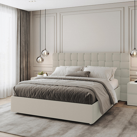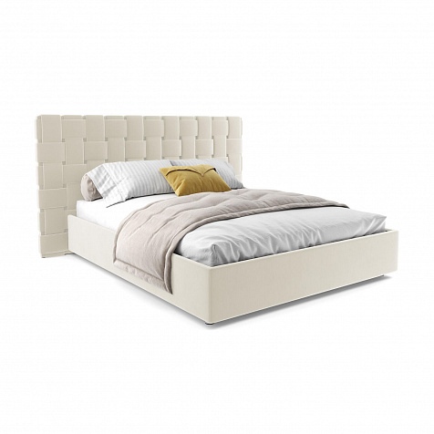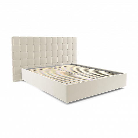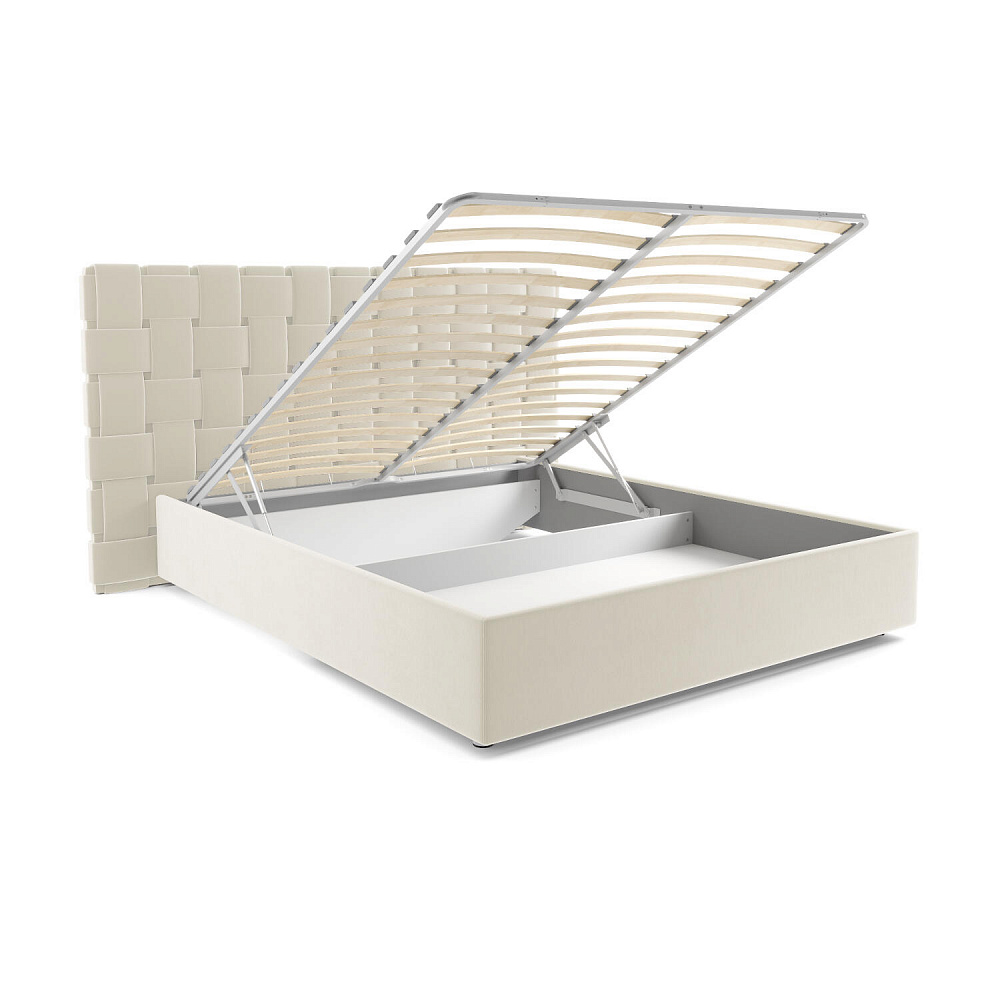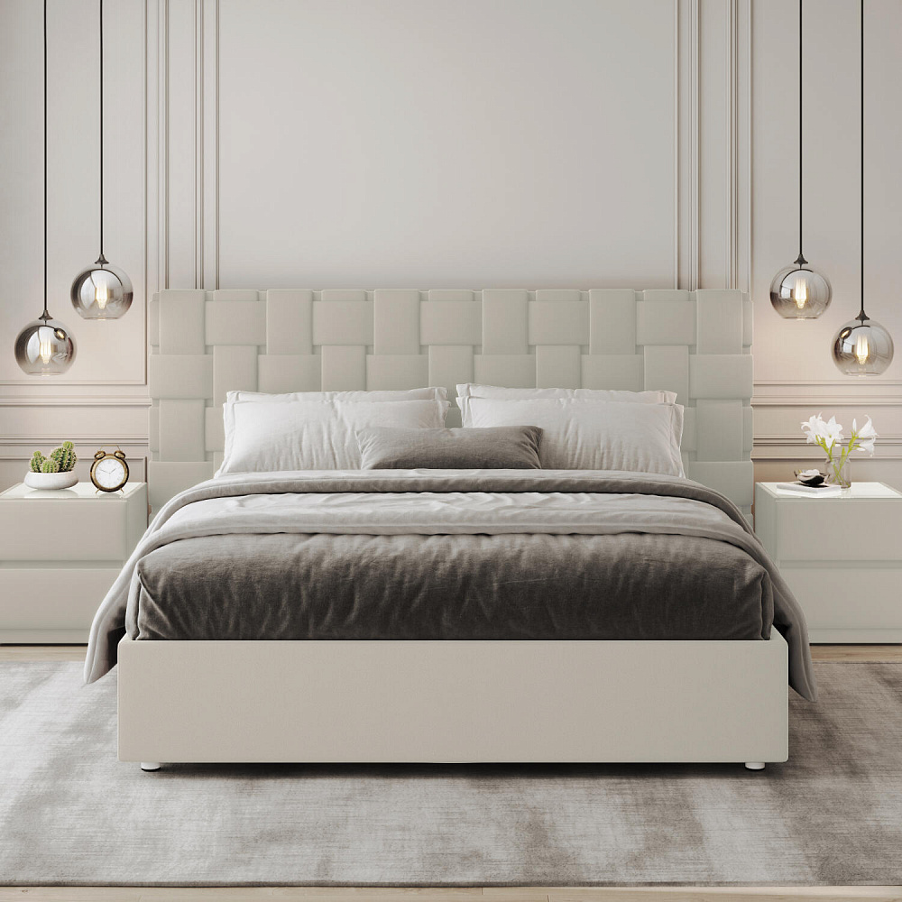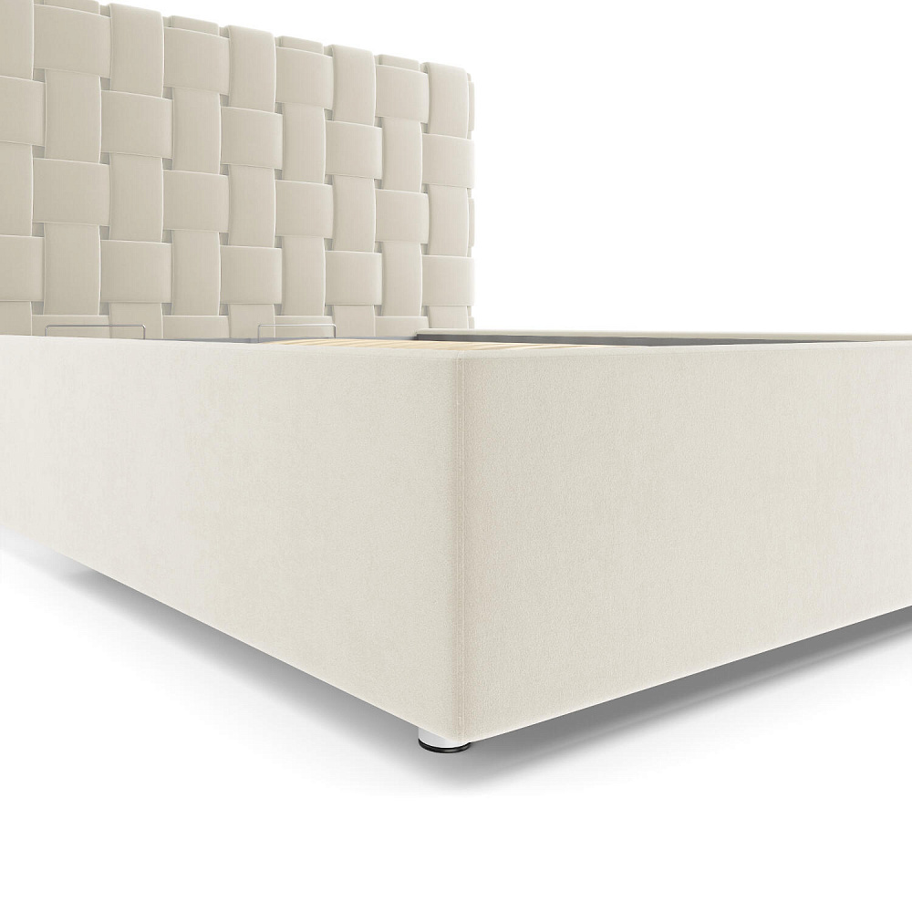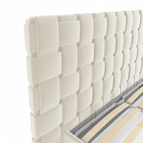 Мягкая кровать «Брианна» станет центральным местом современной спальни благодаря уникальному дизайну. Высокое мягкое изголовье в виде плетеных линий поможет разбавить привычный интерьер спальни и сделает комфортную зону для чтения и просмотра кино. Кровать поможет сэкономить пространство комнаты за счет вместительного бельевого короба под решеткой. Надежное основание и правильно подобранный матрас обеспечат необходимый уровень для здорового сна и отдыха.