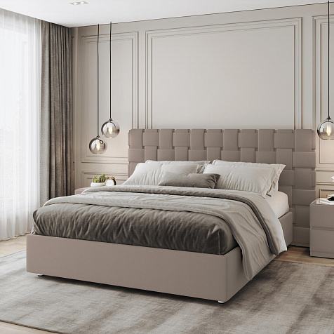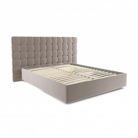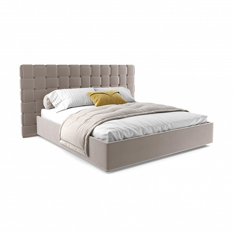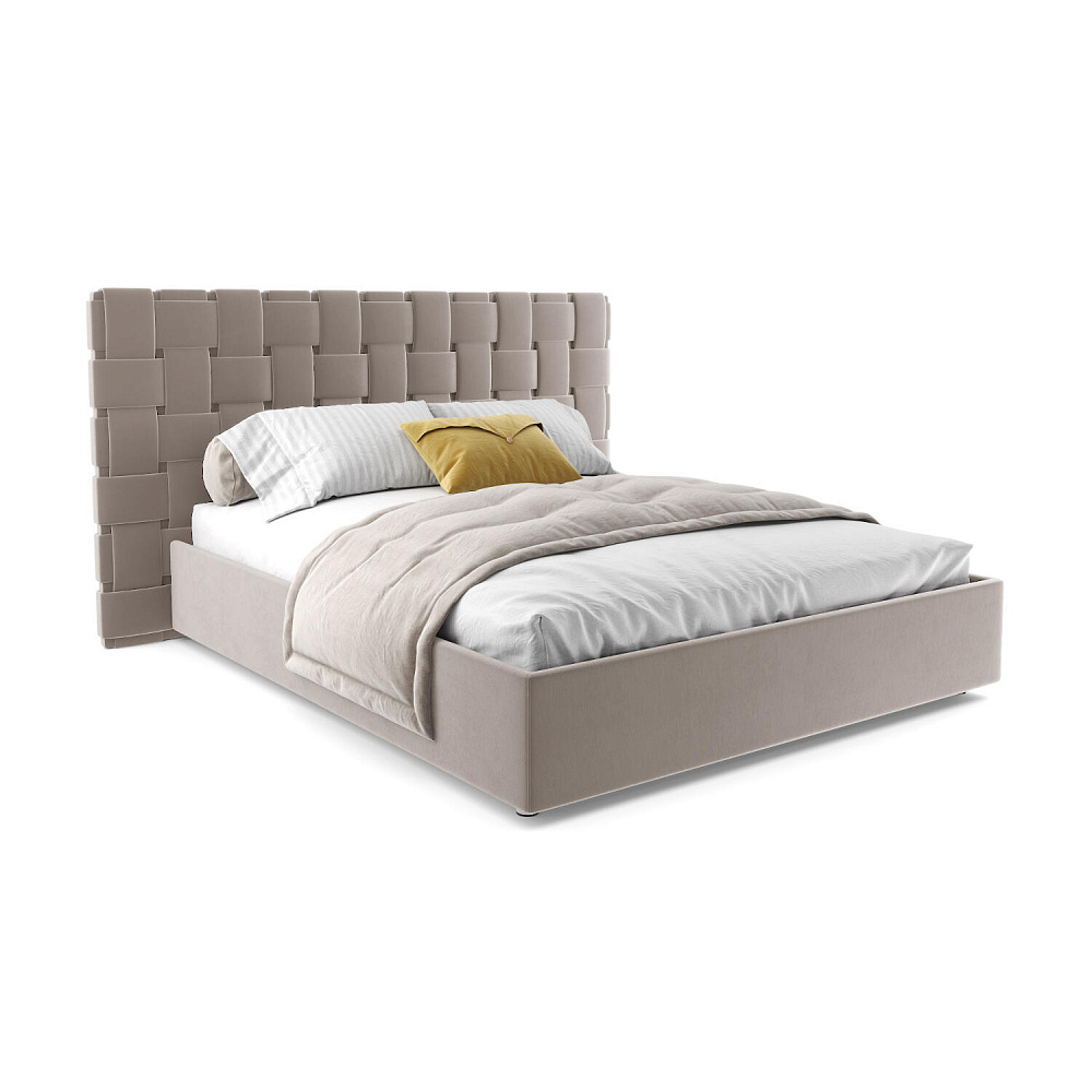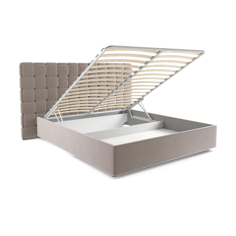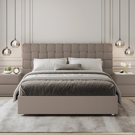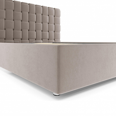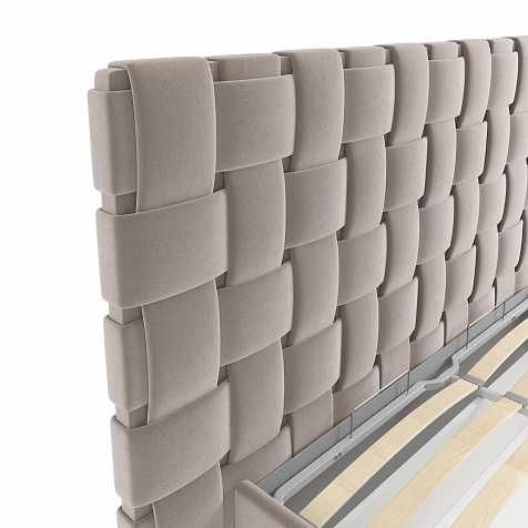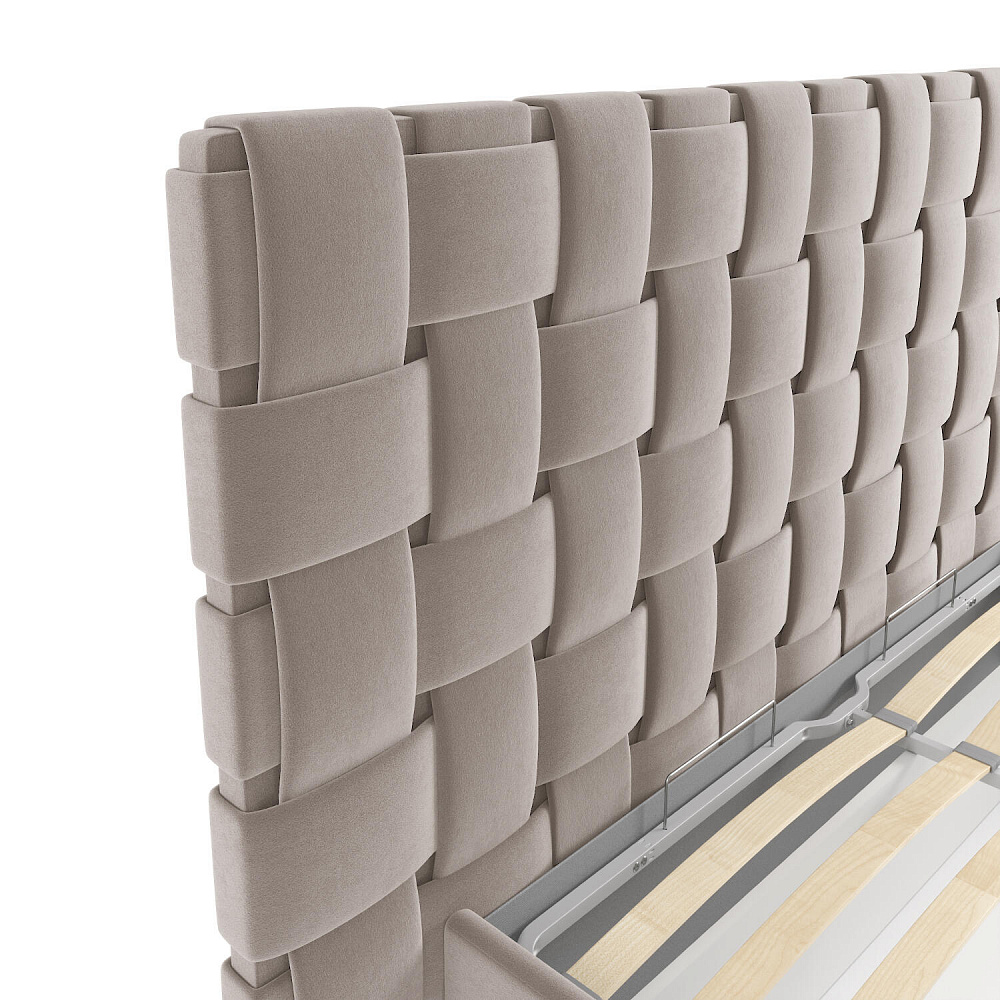 Мягкая кровать «Брианна» станет центральным местом современной спальни благодаря уникальному дизайну. Высокое мягкое изголовье в виде плетеных линий поможет разбавить привычный интерьер спальни и сделает комфортную зону для чтения и просмотра кино. Кровать поможет сэкономить пространство комнаты за счет вместительного бельевого короба под решеткой. Надежное основание и правильно подобранный матрас обеспечат необходимый уровень для здорового сна и отдыха.