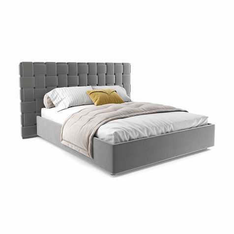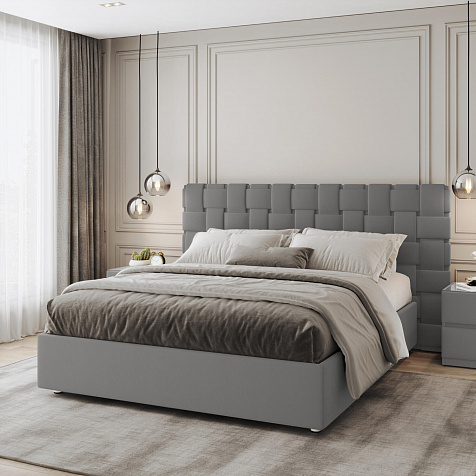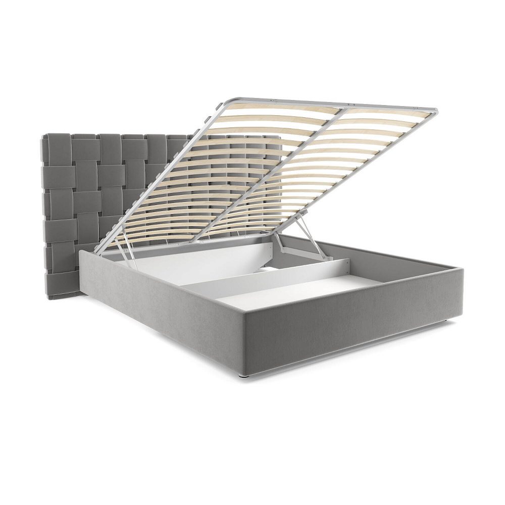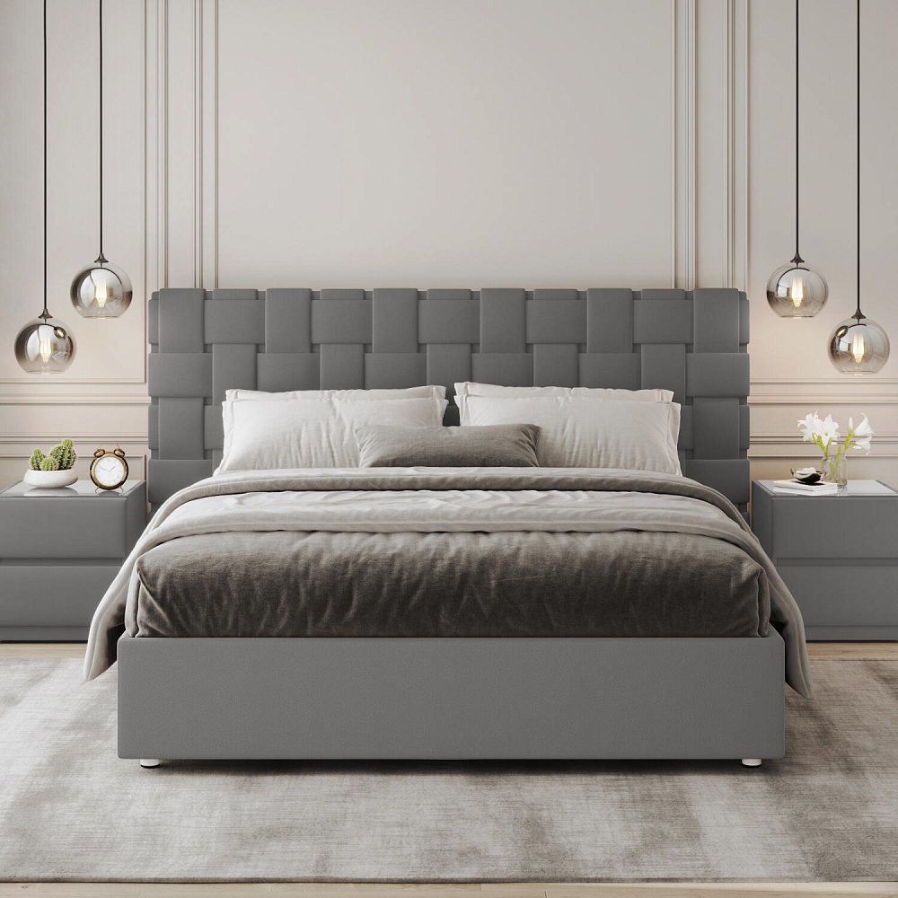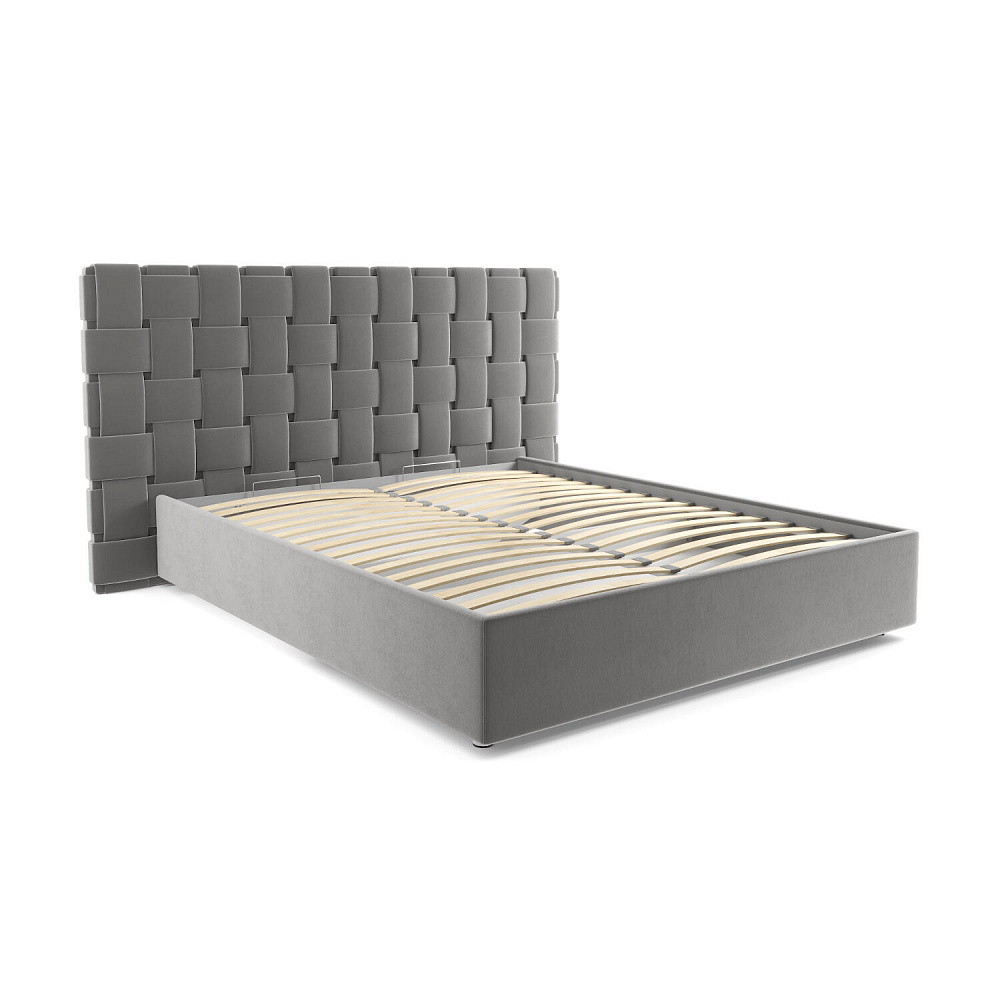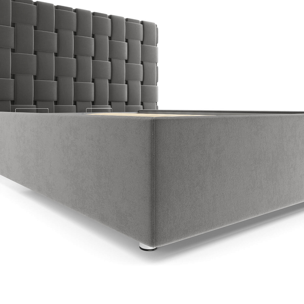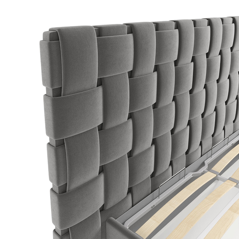 Мягкая кровать «Брианна» станет центральным местом современной спальни благодаря уникальному дизайну. Высокое мягкое изголовье в виде плетеных линий поможет разбавить привычный интерьер спальни и сделает комфортную зону для чтения и просмотра кино. Кровать поможет сэкономить пространство комнаты за счет вместительного бельевого короба под решеткой. Надежное основание и правильно подобранный матрас обеспечат необходимый уровень для здорового сна и отдыха.