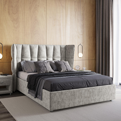 Мягкая кровать «Дарина» станет центральным местом местом современной спальни благодаря оригинальному дизайну. Высокое мягкое изголовье со стежкой в форме трапеций преобразит интерьер спальни и создаст комфортную зону для чтения и просмотра кино. Кровать поможет сэкономить пространство комнаты за счет вместительного бельевого короба под решеткой. Надежное основание и правильно подобранный матрас обеспечат необходимый уровень комфорта для здорового сна и отдыха.