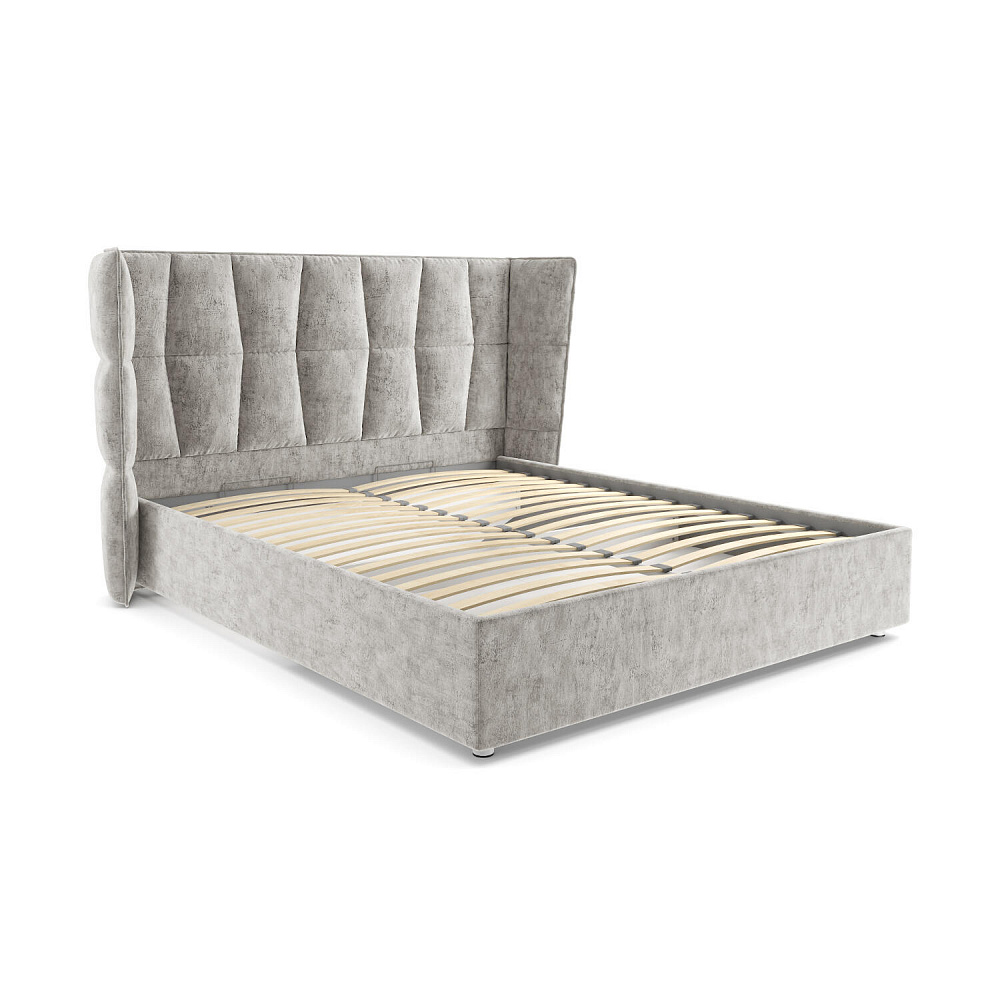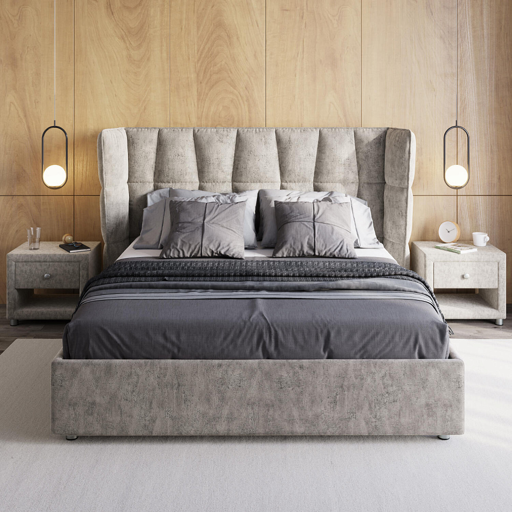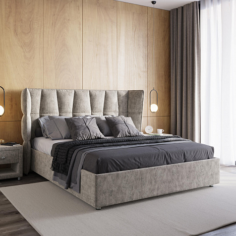 Мягкая кровать «Дарина» станет центральным местом местом современной спальни благодаря оригинальному дизайну. Высокое мягкое изголовье со стежкой в форме трапеций преобразит интерьер спальни и создаст комфортную зону для чтения и просмотра кино. Кровать поможет сэкономить пространство комнаты за счет вместительного бельевого короба под решеткой. Надежное основание и правильно подобранный матрас обеспечат необходимый уровень комфорта для здорового сна и отдыха.