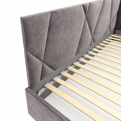 - Обивка из велюра. Тактильно приятный велюр с мелким принтом под камень излучает естественность, лёгкость.