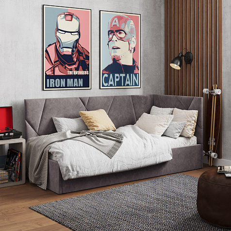 - Универсальная сборка. Боковая спинка выполнена полностью в обивочной ткани и может устанавливаться как справа, так и слева.