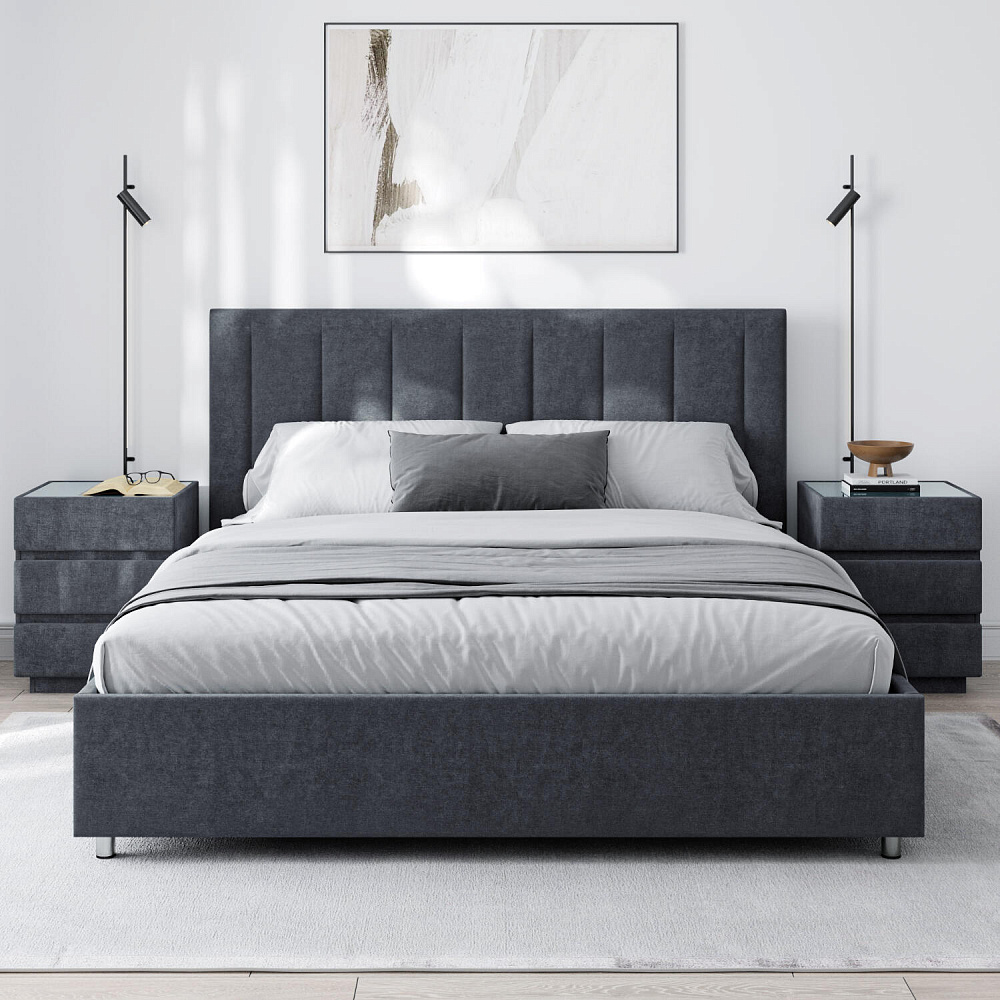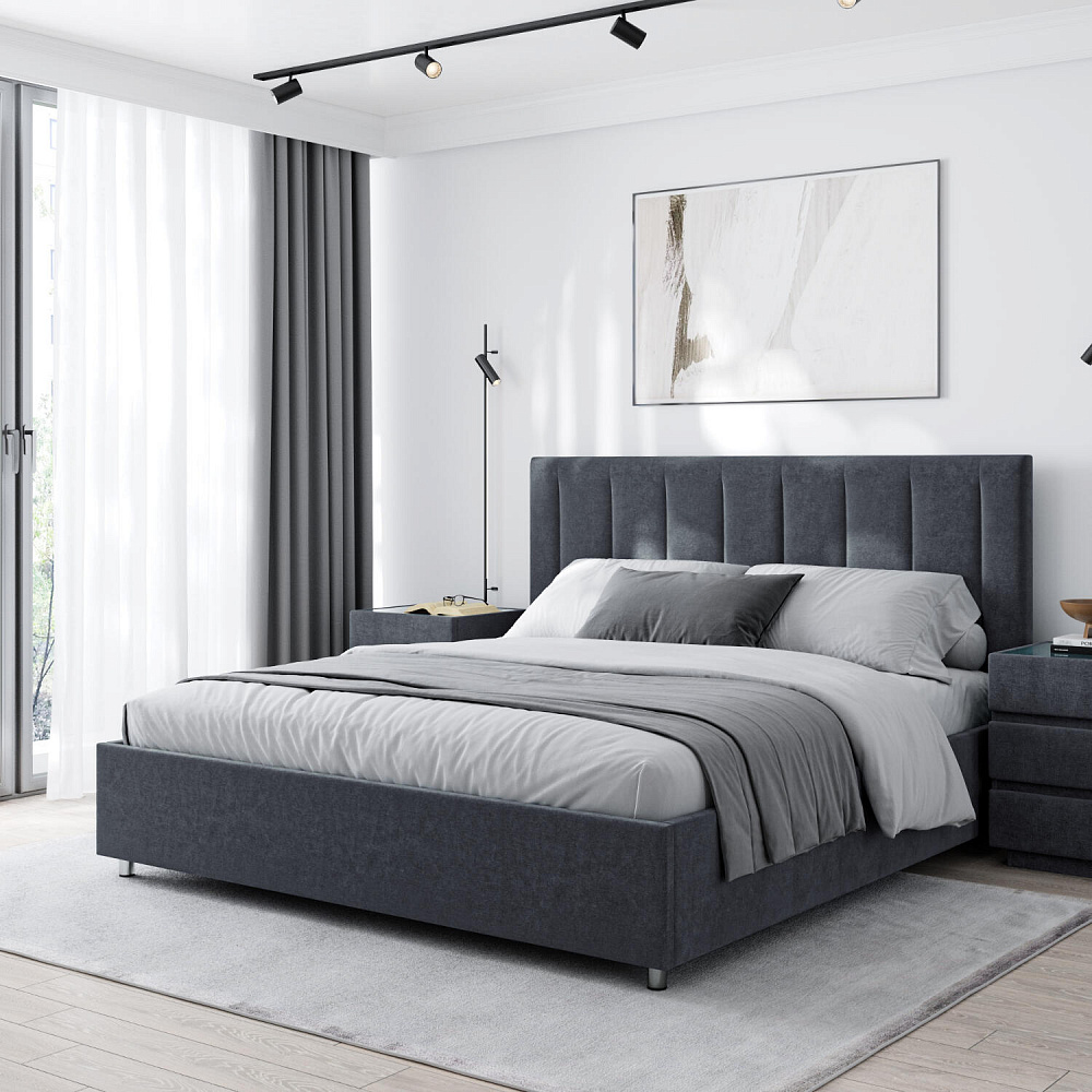 Мягкая кровать «Альфа» будет смотреться в интерьере спальни стильно и лаконично. Высокое изголовье модели украшено вертикальными строчками. Ортопедическое основание и правильно подобранный матрас обеспечат комфортный отдых и здоровый сон.