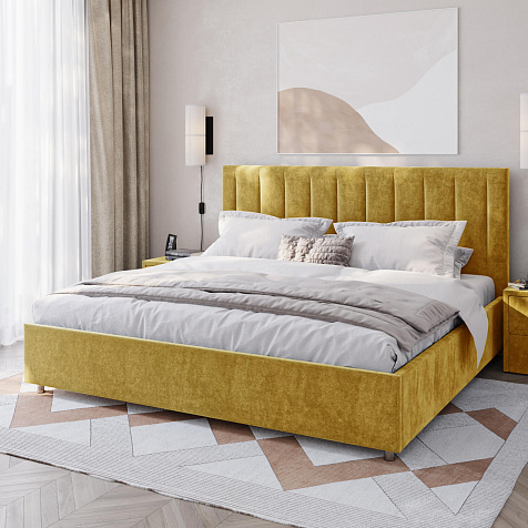 Мягкая кровать «Альфа» будет смотреться в интерьере спальни стильно и лаконично. Высокое изголовье модели украшено вертикальными строчками. Ортопедическое основание и правильно подобранный матрас обеспечат комфортный отдых и здоровый сон.