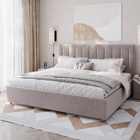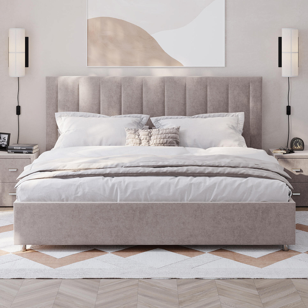 Мягкая кровать «Альфа» будет смотреться в интерьере спальни стильно и лаконично. Высокое изголовье модели украшено вертикальными строчками. Ортопедическое основание и правильно подобранный матрас обеспечат комфортный отдых и здоровый сон.