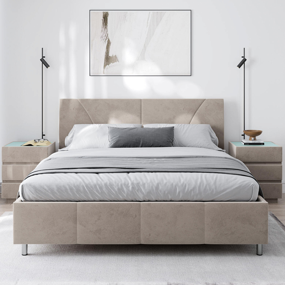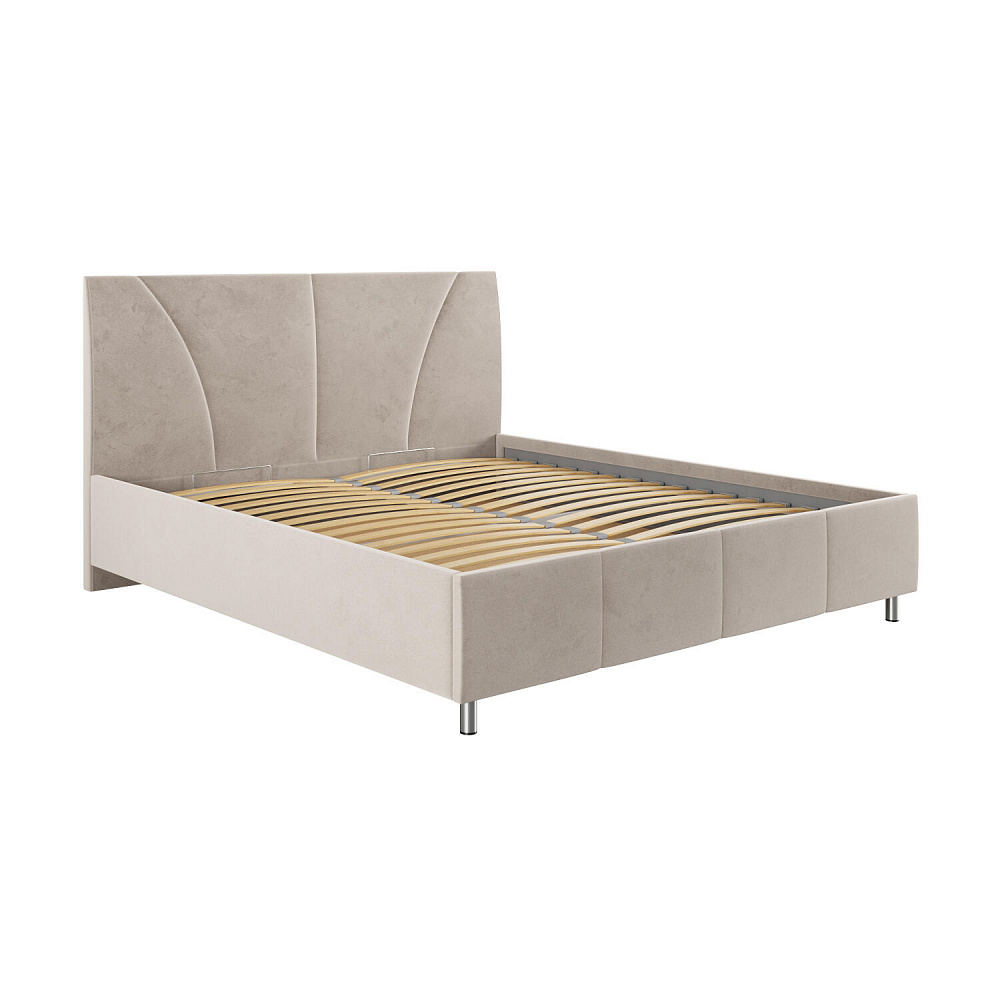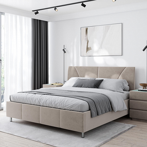 Мягкая кровать «Каролина» для тех, кому важен здоровый сон и эстетичный вид мебели. Дизайн отличается диагональными и прямыми строчками и слегка изогнутым изголовьем. Возвышение на ножках добавит в интерьер динамики и лёгкости. Кровать также поможет сэкономить пространство квартиры благодаря вместительному бельевому коробу под решёткой.