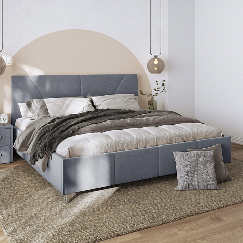 Мягкая кровать «Каролина» для тех, кому важен здоровый сон и эстетичный вид мебели. Дизайн отличается диагональными и прямыми строчками и слегка изогнутым изголовьем. Возвышение на ножках добавит в интерьер динамики и лёгкости. Кровать также поможет сэкономить пространство квартиры благодаря вместительному бельевому коробу под решёткой.