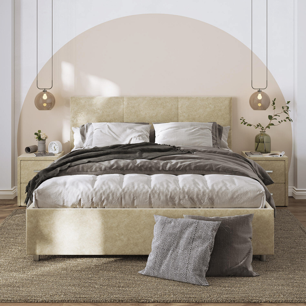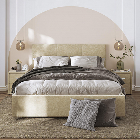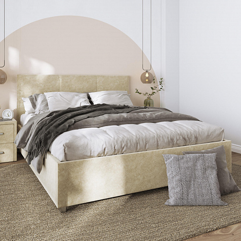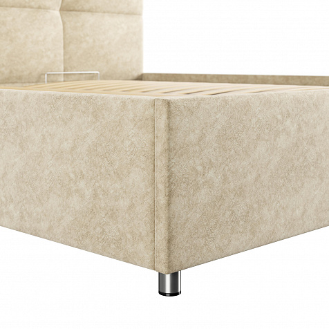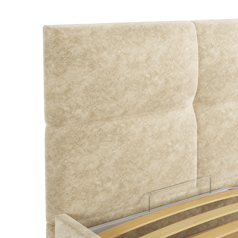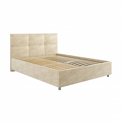 Кровать «Альба» — гармоничное сочетание стильного дизайна и комфорта. Мягкое изголовье с декором в виде прямоугольной строчки выглядит эффектно и создаёт ощущение уюта. Модель также поможет сэкономить пространство спальни благодаря вместительному бельевому коробу под решёткой.