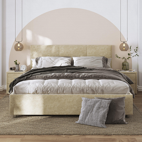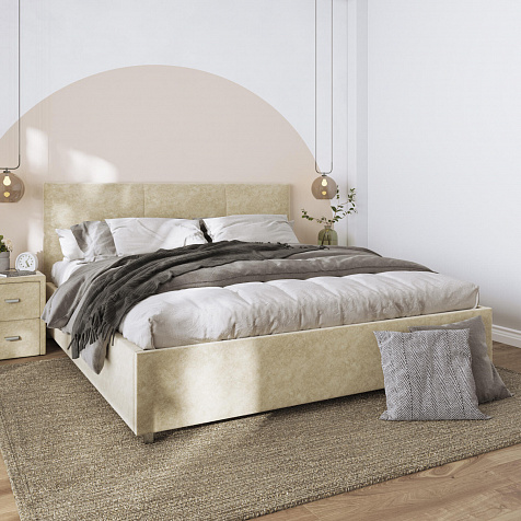 Кровать «Альба» — гармоничное сочетание стильного дизайна и комфорта. Мягкое изголовье с декором в виде прямоугольной строчки выглядит эффектно и создаёт ощущение уюта. Модель также поможет сэкономить пространство спальни благодаря вместительному бельевому коробу под решёткой.