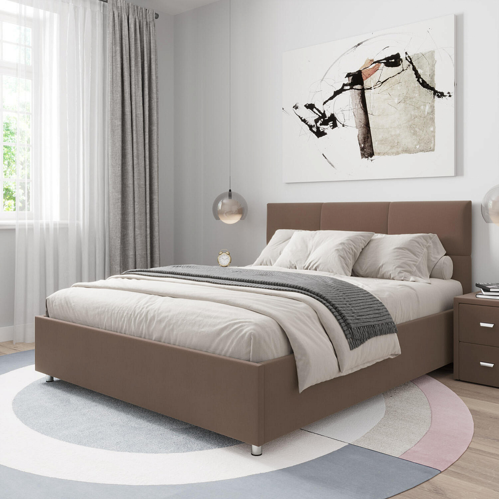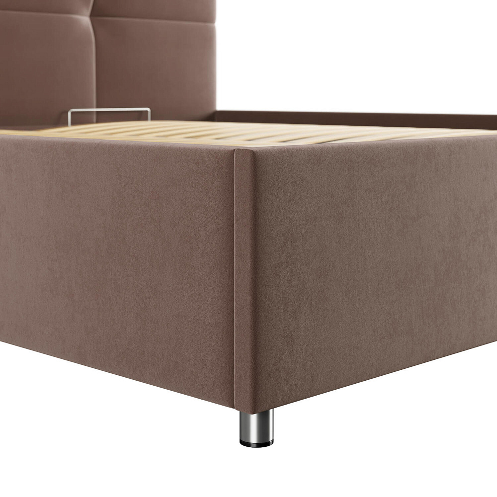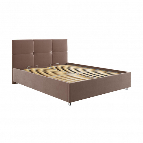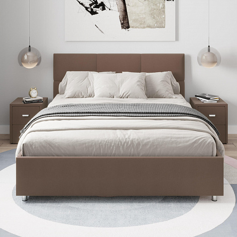 Кровать «Альба» — гармоничное сочетание стильного дизайна и комфорта. Мягкое изголовье с декором в виде прямоугольной строчки выглядит эффектно и создаёт ощущение уюта. Модель также поможет сэкономить пространство спальни благодаря вместительному бельевому коробу под решёткой.