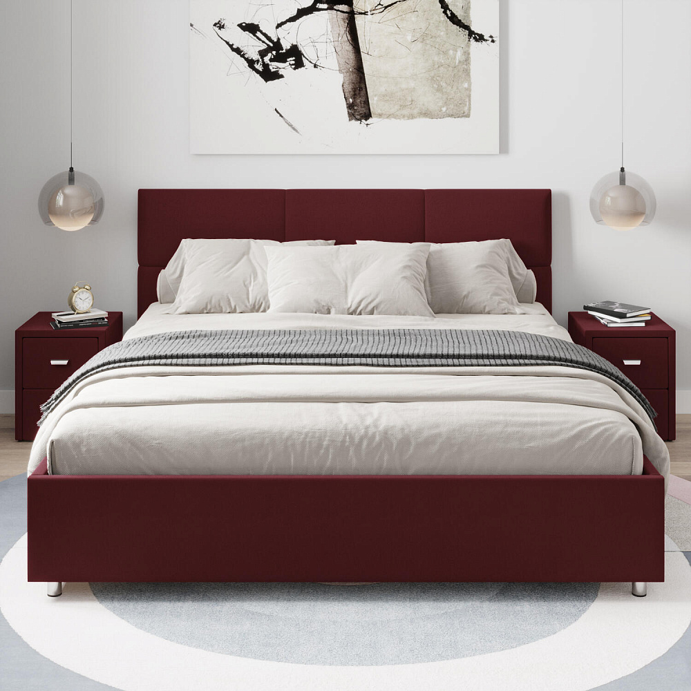 Кровать «Альба» — гармоничное сочетание стильного дизайна и комфорта. Мягкое изголовье с декором в виде прямоугольной строчки выглядит эффектно и создаёт ощущение уюта. Модель также поможет сэкономить пространство спальни благодаря вместительному бельевому коробу под решёткой.
