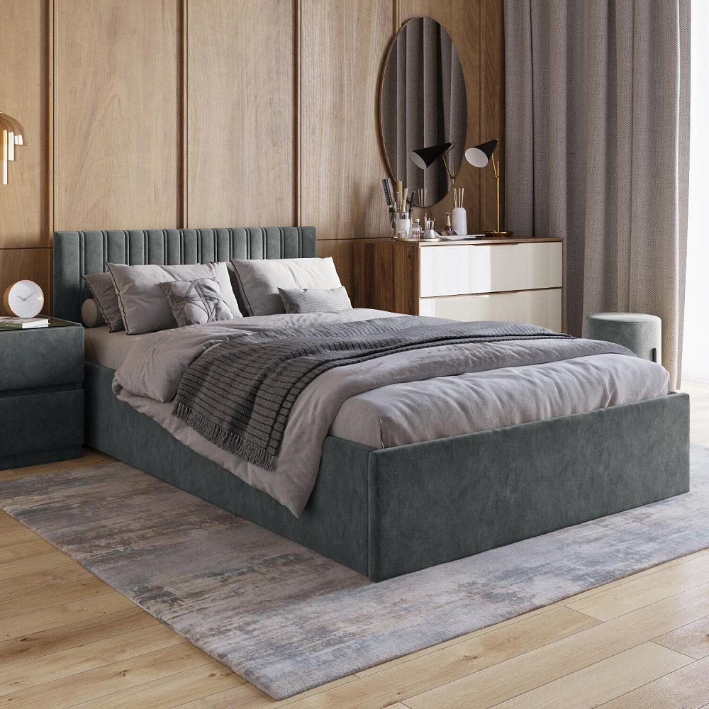 Кровать «Адель» с невысоким изголовьем — лаконичный вариант для любого интерьера, осталось только выбрать подходящий цвет. Кровать выполнена в мягкой обивке и декорирована ненавязчивой вертикальной строчкой на изголовье. Надёжное основание и правильно подобранный матрас обеспечит оптимальный уровень комфорта во время отдыха. Наличие вместительного бельевого короба под решёткой кровати поможет сэкономить пространство комнаты.