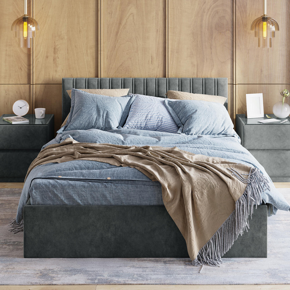 Кровать «Адель» с невысоким изголовьем — лаконичный вариант для любого интерьера, осталось только выбрать подходящий цвет. Кровать выполнена в мягкой обивке и декорирована ненавязчивой вертикальной строчкой на изголовье. Надёжное основание и правильно подобранный матрас обеспечит оптимальный уровень комфорта во время отдыха. Наличие вместительного бельевого короба под решёткой кровати поможет сэкономить пространство комнаты.