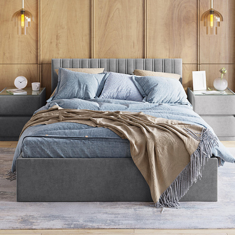 Кровать «Адель» с невысоким изголовьем — лаконичный вариант для любого интерьера, осталось только выбрать подходящий цвет. Кровать выполнена в мягкой обивке и декорирована ненавязчивой вертикальной строчкой на изголовье. Надёжное основание и правильно подобранный матрас обеспечит оптимальный уровень комфорта во время отдыха. Наличие вместительного бельевого короба под решёткой кровати поможет сэкономить пространство комнаты.