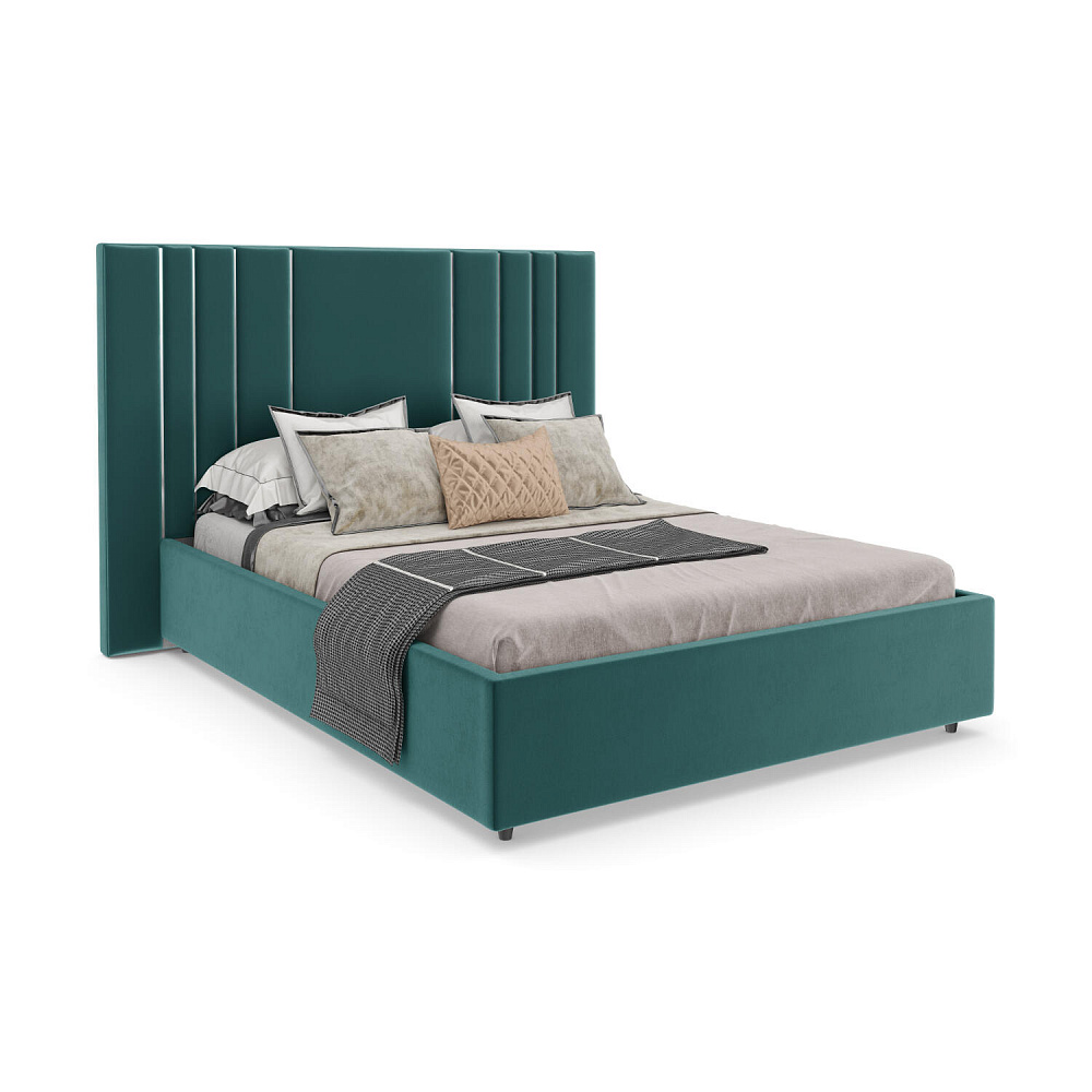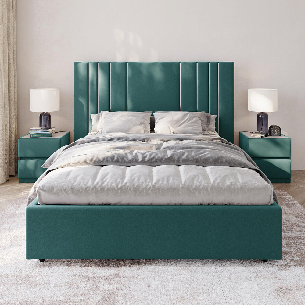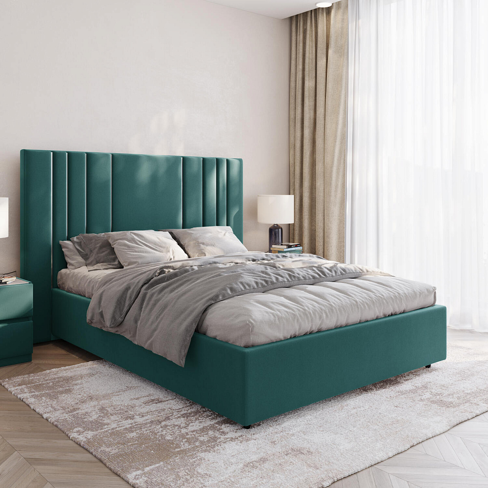 Мягкая кровать «Рания» создана для воплощения смелых интерьерных решений. Высокое изголовье декорировано узором из вертикальных металлизированных вставок, утопающих в изголовье. Под решёткой с подъёмным механизмом предусмотрен вместительный бельевой короб. Надежное основание и правильно подобранный матрас обеспечат необходимый уровень для здорового сна и отдыха.