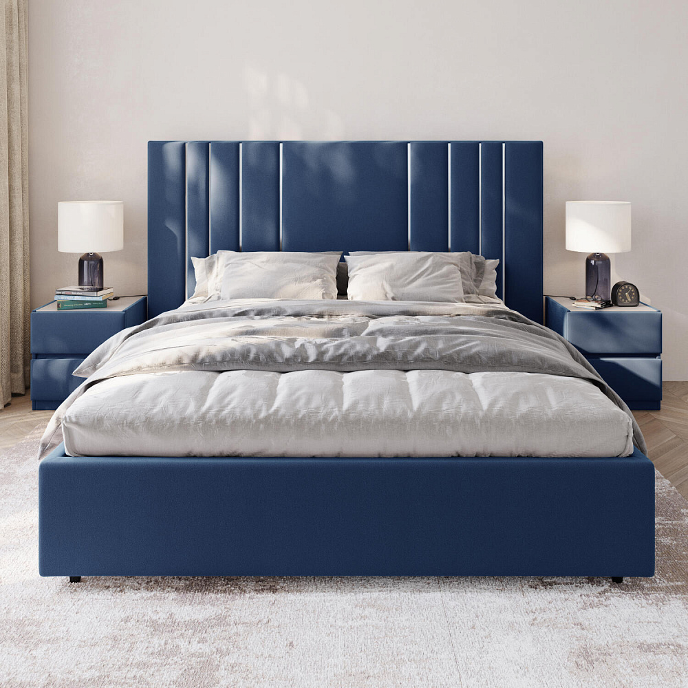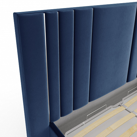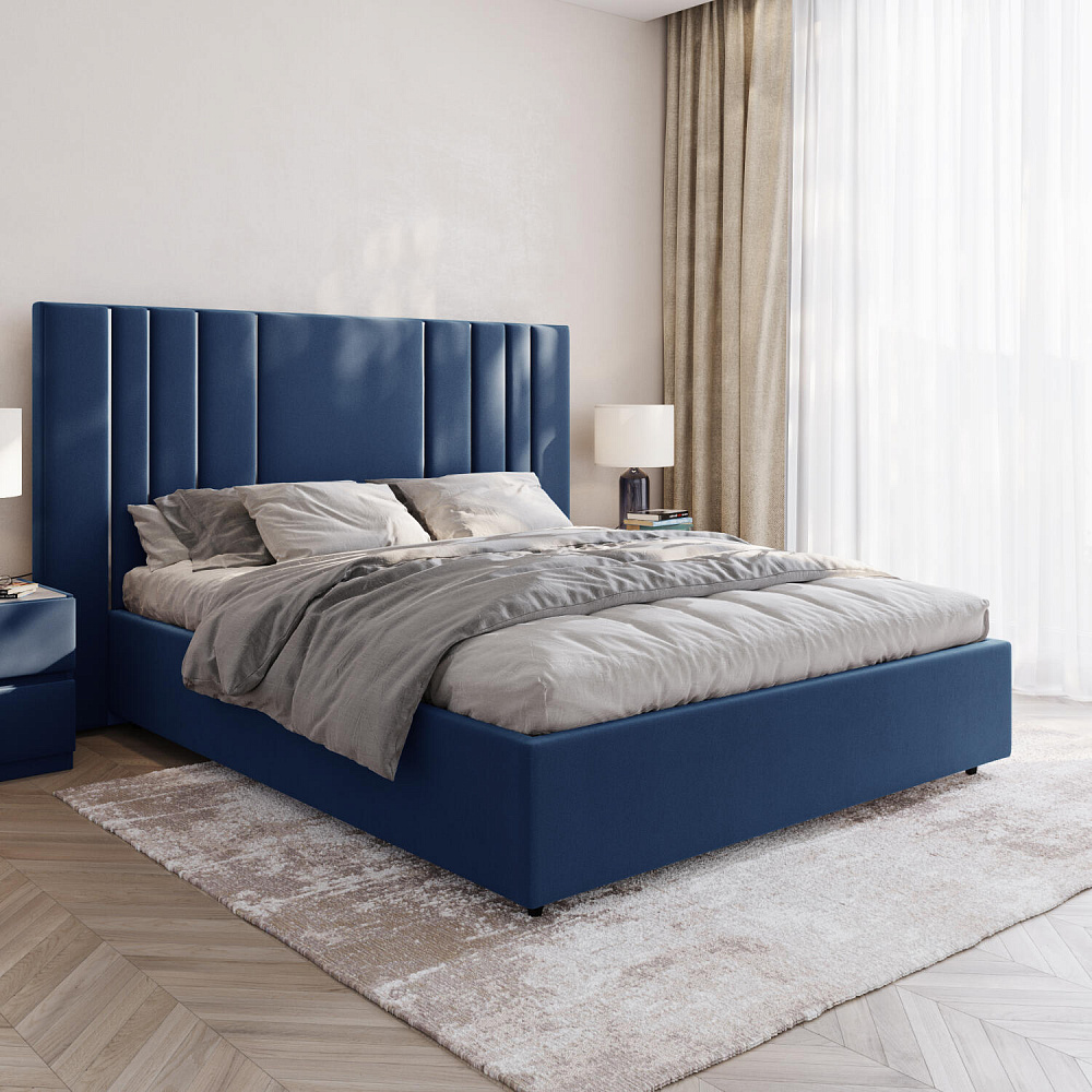 Мягкая кровать «Рания» создана для воплощения смелых интерьерных решений. Высокое изголовье декорировано узором из вертикальных металлизированных вставок, утопающих в изголовье. Под решёткой с подъёмным механизмом предусмотрен вместительный бельевой короб. Надежное основание и правильно подобранный матрас обеспечат необходимый уровень для здорового сна и отдыха.