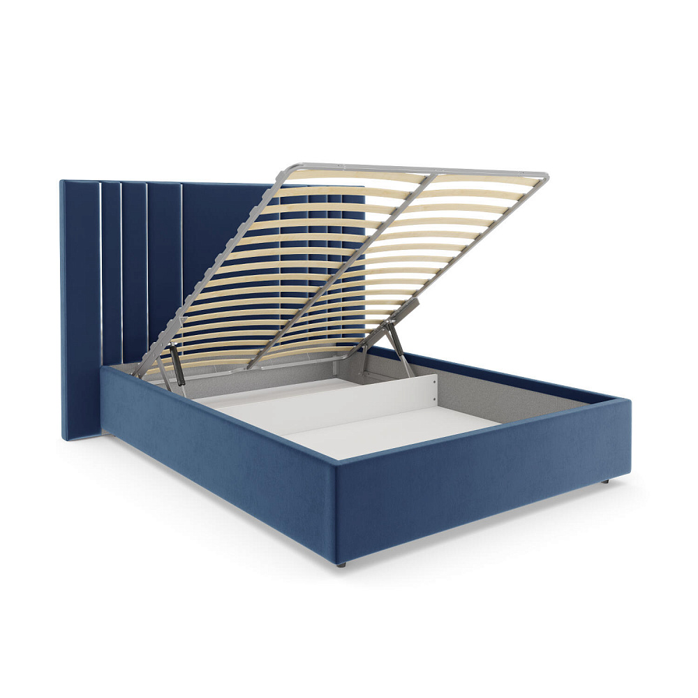 Удобный доступ к коробу. Газлифт поднимает и опускает основание вместе с матрасом, открывая доступ к пространству для хранения вещей.