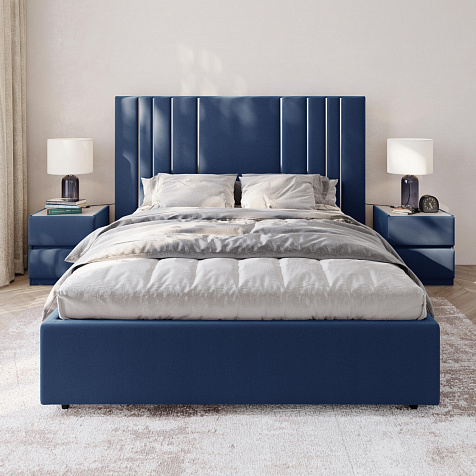 Мягкая кровать «Рания» создана для воплощения смелых интерьерных решений. Высокое изголовье декорировано узором из вертикальных металлизированных вставок, утопающих в изголовье. Под решёткой с подъёмным механизмом предусмотрен вместительный бельевой короб. Надежное основание и правильно подобранный матрас обеспечат необходимый уровень для здорового сна и отдыха.