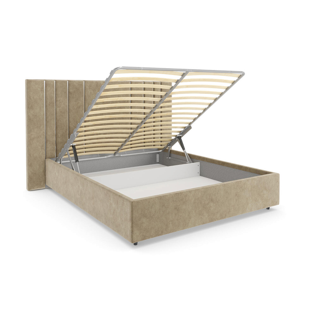 Удобный доступ к коробу. Газлифт поднимает и опускает основание вместе с матрасом, открывая доступ к пространству для хранения вещей.