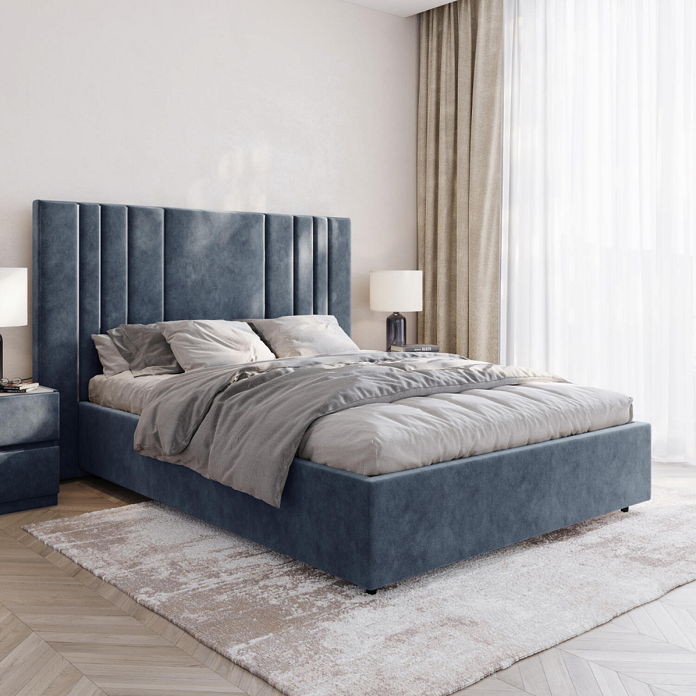 Мягкая кровать «Рания» создана для воплощения смелых интерьерных решений. Высокое изголовье декорировано узором из вертикальных металлизированных вставок, утопающих в изголовье. Под решёткой с подъёмным механизмом предусмотрен вместительный бельевой короб. Надежное основание и правильно подобранный матрас обеспечат необходимый уровень для здорового сна и отдыха.
