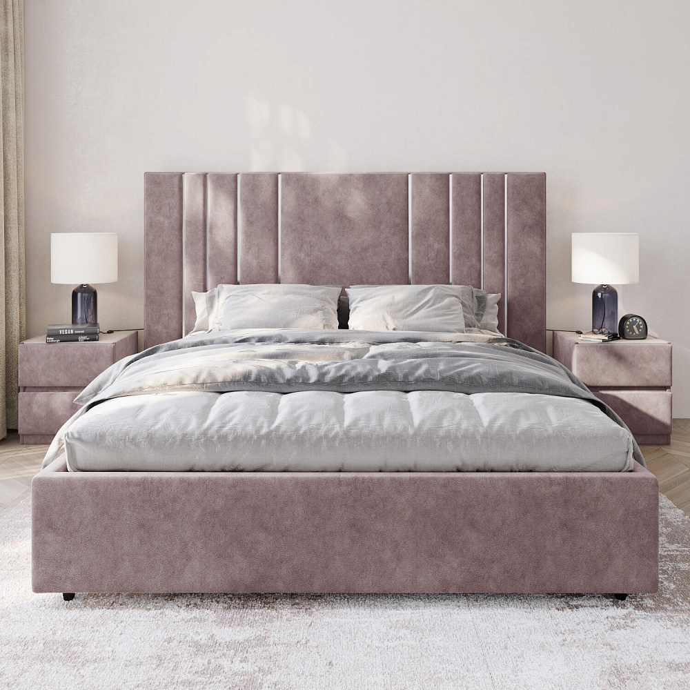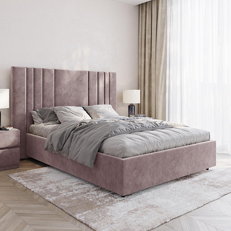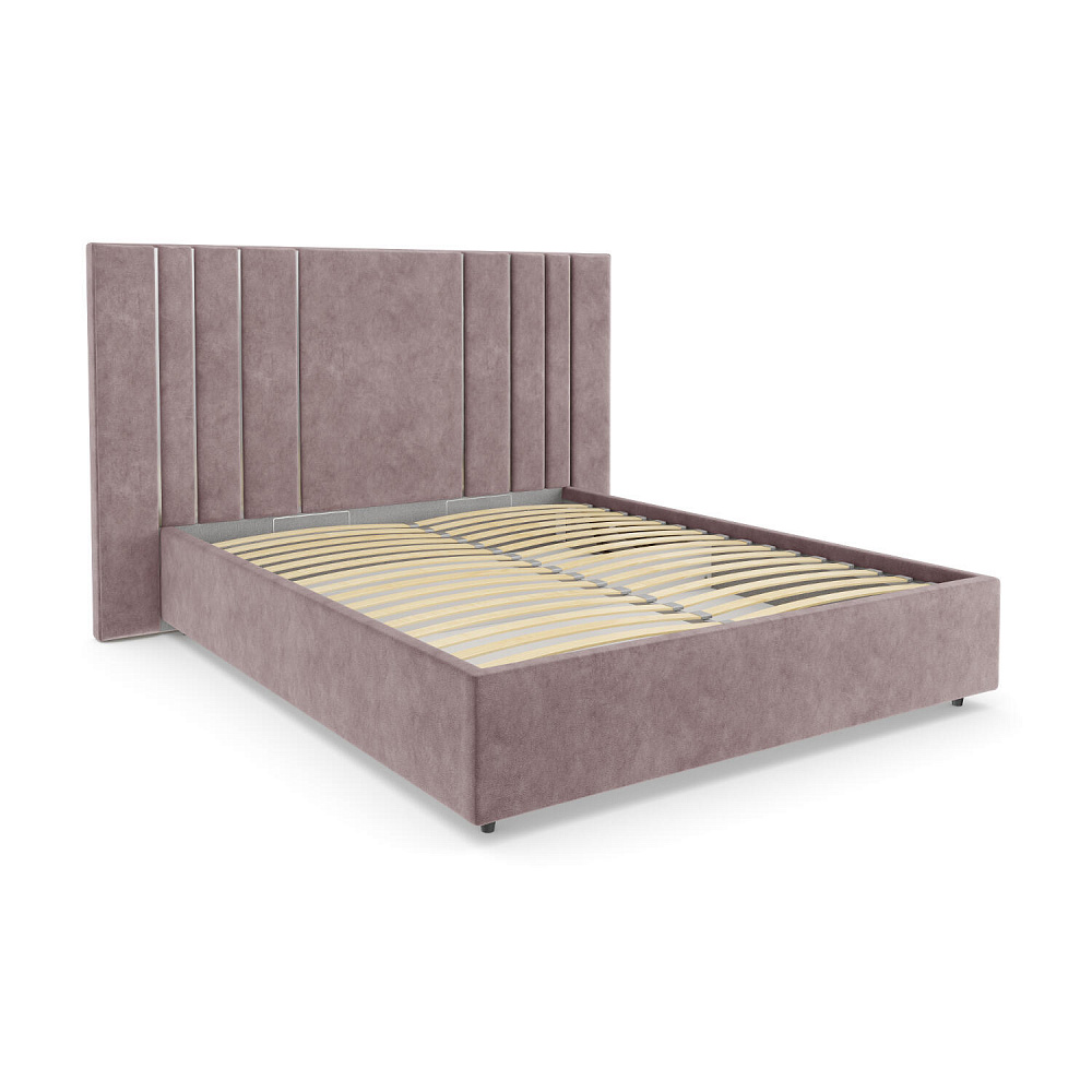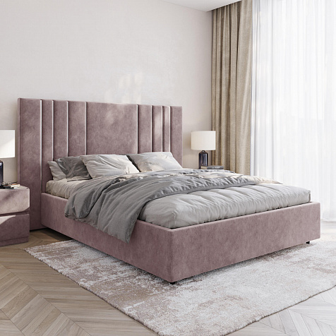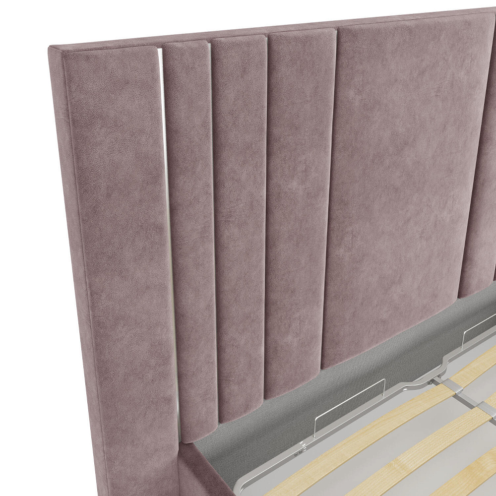 Мягкая кровать «Рания» создана для воплощения смелых интерьерных решений. Высокое изголовье декорировано узором из вертикальных металлизированных вставок, утопающих в изголовье. Под решёткой с подъёмным механизмом предусмотрен вместительный бельевой короб. Надежное основание и правильно подобранный матрас обеспечат необходимый уровень для здорового сна и отдыха.