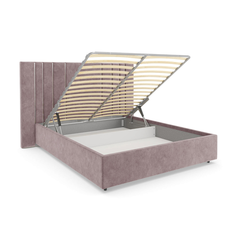 Удобный доступ к коробу. Газлифт поднимает и опускает основание вместе с матрасом, открывая доступ к пространству для хранения вещей.