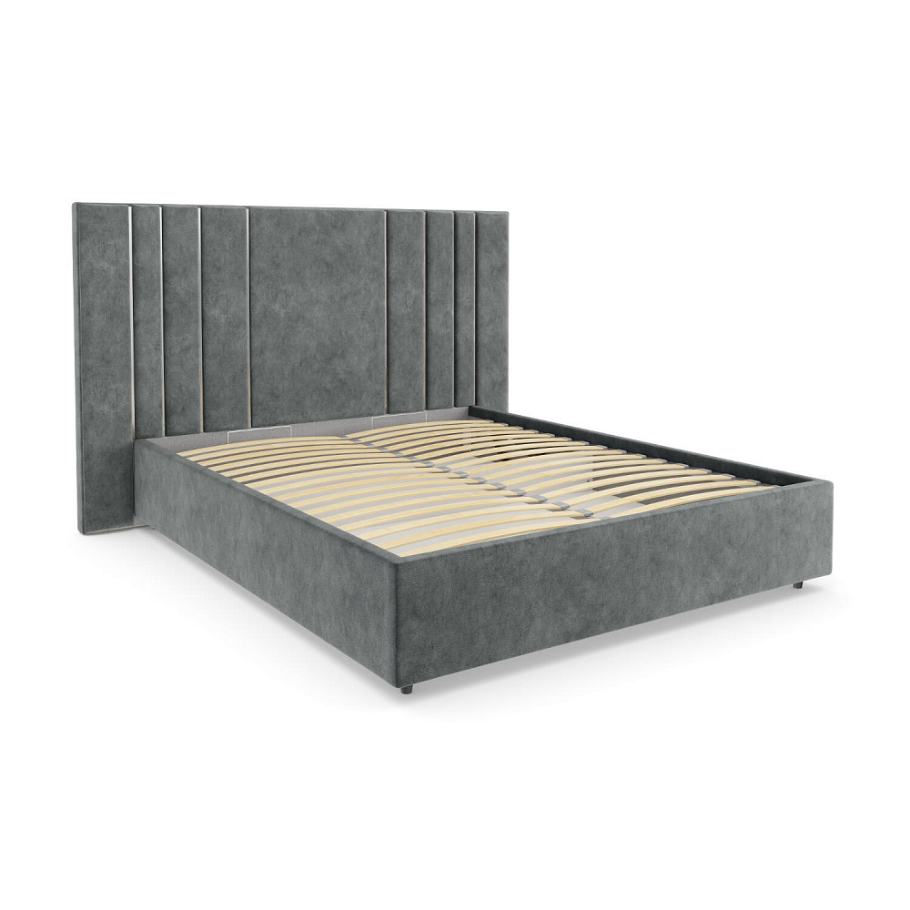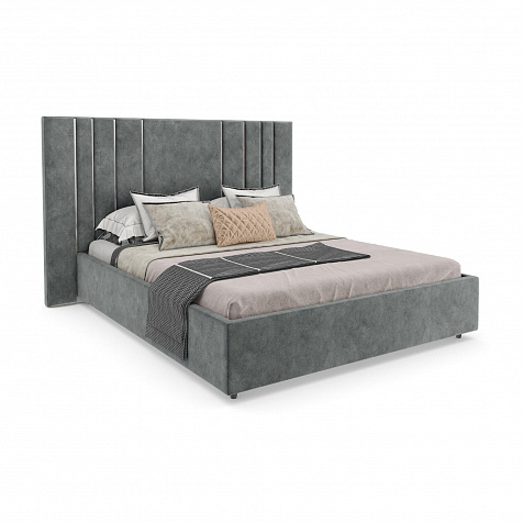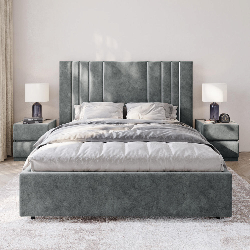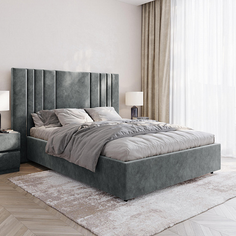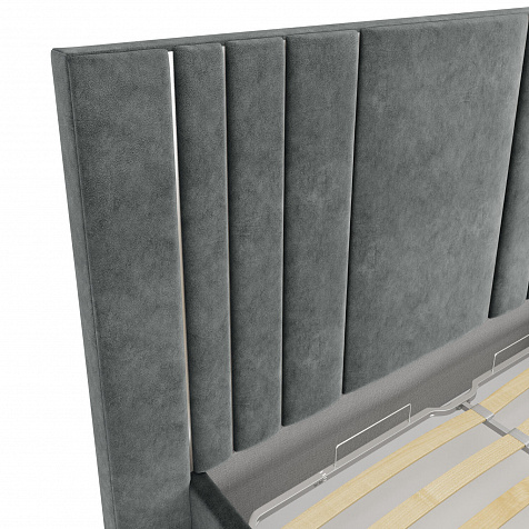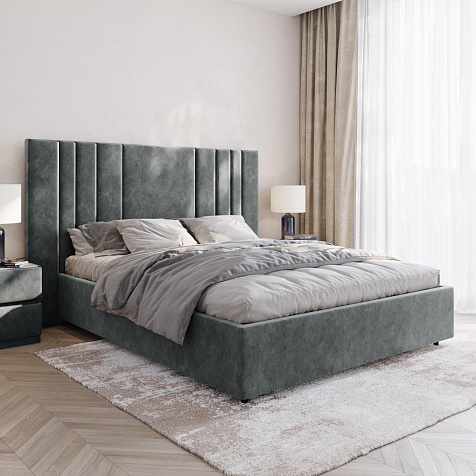 Мягкая кровать «Рания» создана для воплощения смелых интерьерных решений. Высокое изголовье декорировано узором из вертикальных металлизированных вставок, утопающих в изголовье. Под решёткой с подъёмным механизмом предусмотрен вместительный бельевой короб. Надежное основание и правильно подобранный матрас обеспечат необходимый уровень для здорового сна и отдыха.