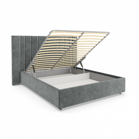 Удобный доступ к коробу. Газлифт поднимает и опускает основание вместе с матрасом, открывая доступ к пространству для хранения вещей.
