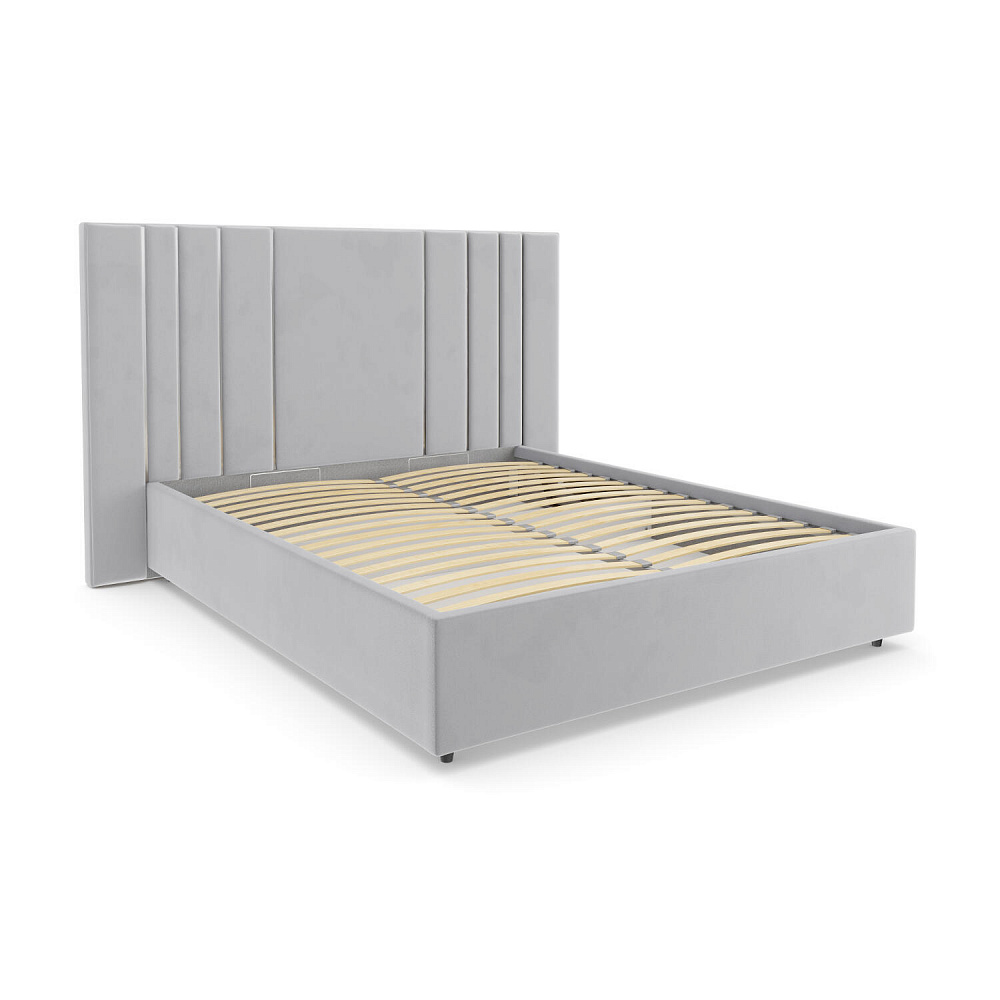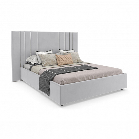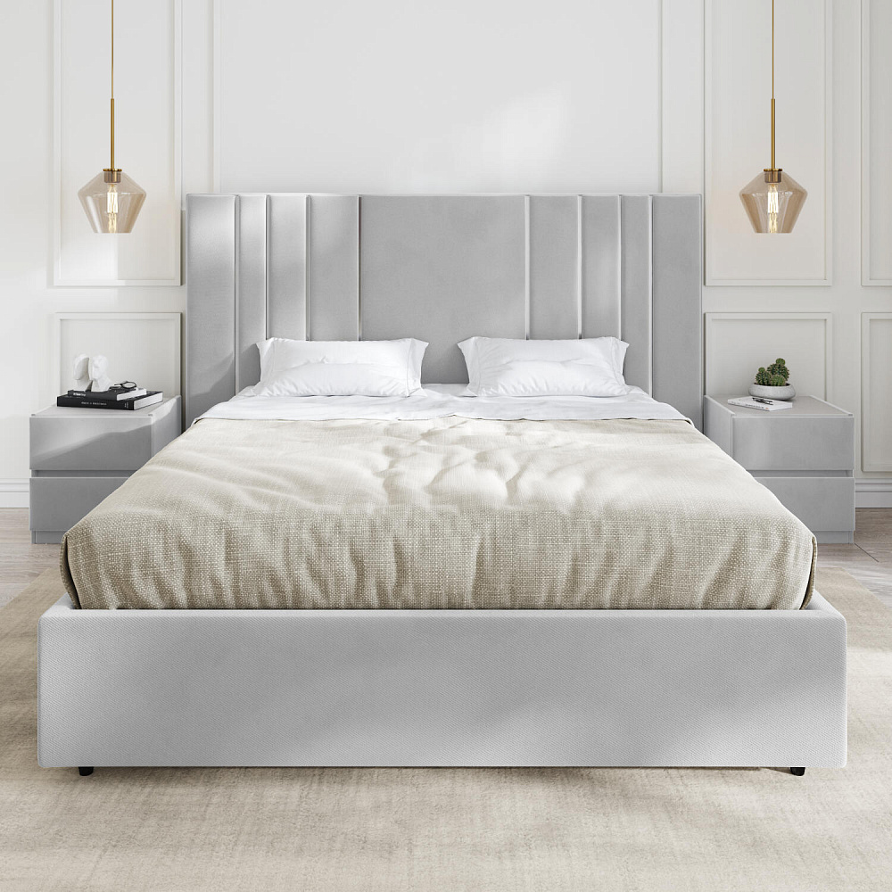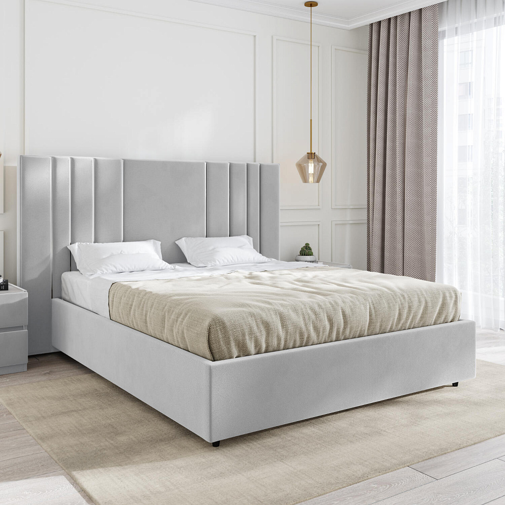 Мягкая кровать «Рания» создана для воплощения смелых интерьерных решений. Высокое изголовье декорировано узором из вертикальных металлизированных вставок, утопающих в изголовье. Под решёткой с подъёмным механизмом предусмотрен вместительный бельевой короб. Надежное основание и правильно подобранный матрас обеспечат необходимый уровень для здорового сна и отдыха.