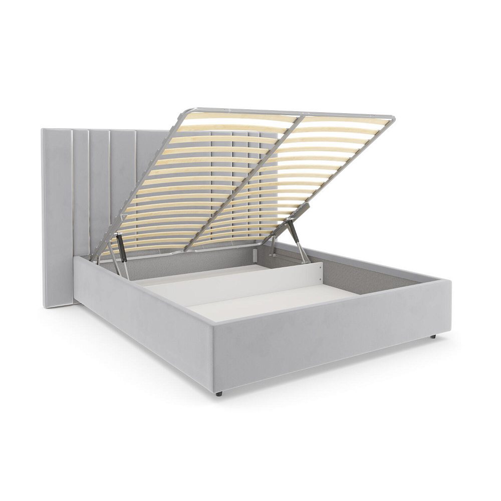 Удобный доступ к коробу. Газлифт поднимает и опускает основание вместе с матрасом, открывая доступ к пространству для хранения вещей.