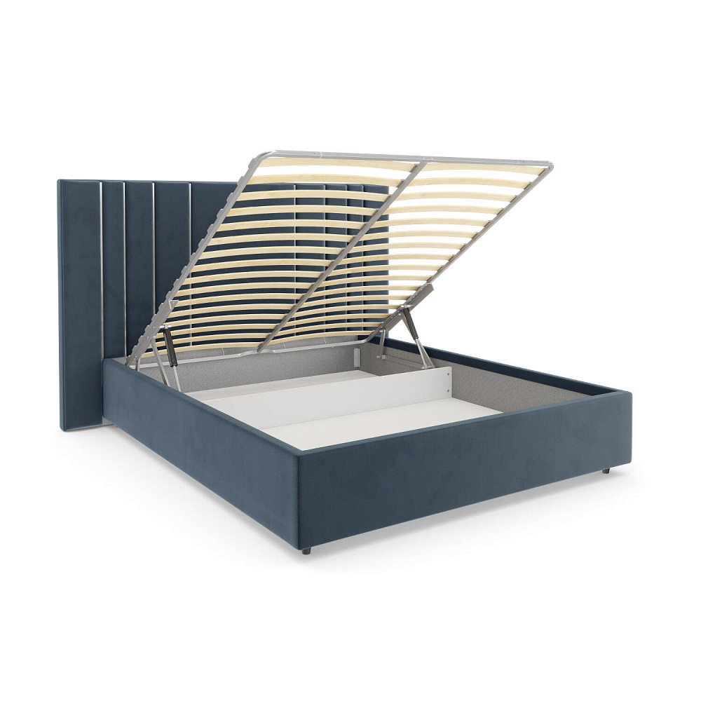 Удобный доступ к коробу. Газлифт поднимает и опускает основание вместе с матрасом, открывая доступ к пространству для хранения вещей.