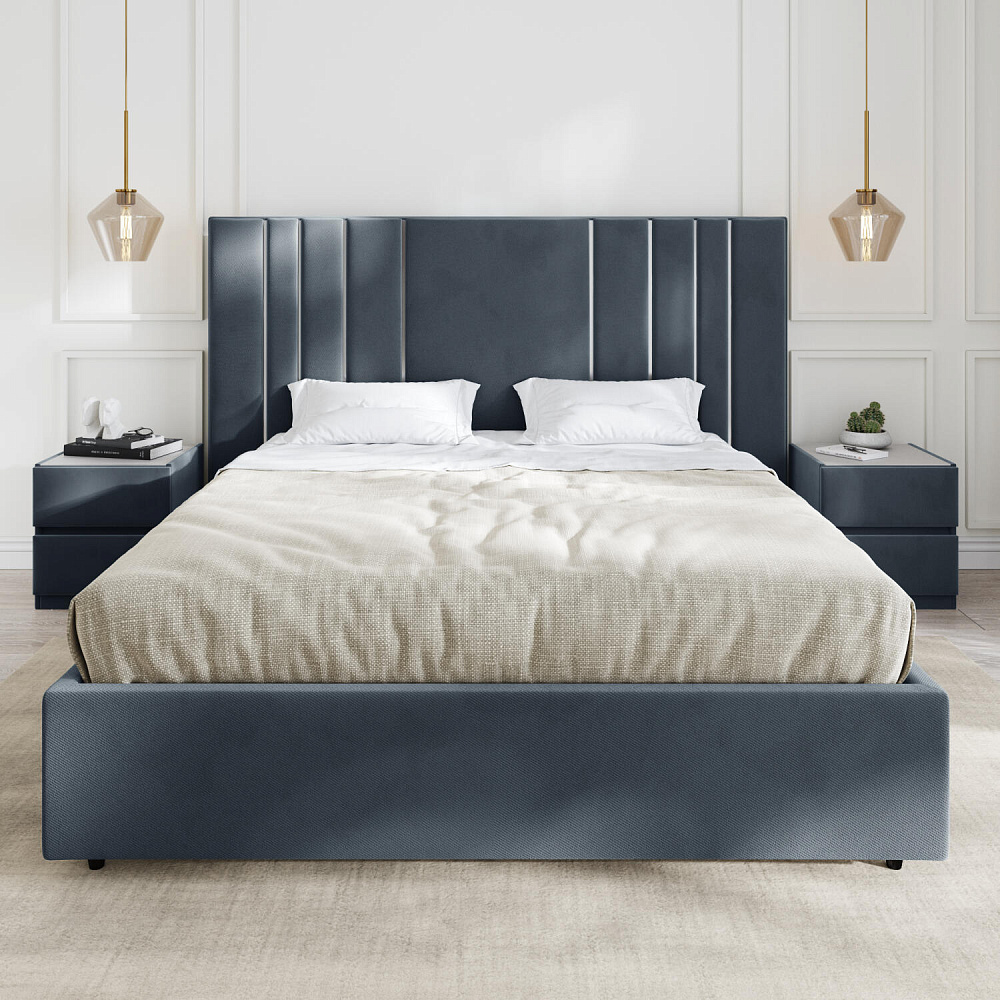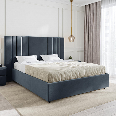 Мягкая кровать «Рания» создана для воплощения смелых интерьерных решений. Высокое изголовье декорировано узором из вертикальных металлизированных вставок, утопающих в изголовье. Под решёткой с подъёмным механизмом предусмотрен вместительный бельевой короб. Надежное основание и правильно подобранный матрас обеспечат необходимый уровень для здорового сна и отдыха.
