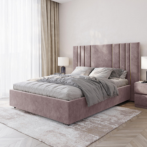 Мягкая кровать «Рания» создана для воплощения смелых интерьерных решений. Высокое изголовье декорировано узором из вертикальных металлизированных вставок, утопающих в изголовье. Под решёткой с подъёмным механизмом предусмотрен вместительный бельевой короб. Надежное основание и правильно подобранный матрас обеспечат необходимый уровень для здорового сна и отдыха.