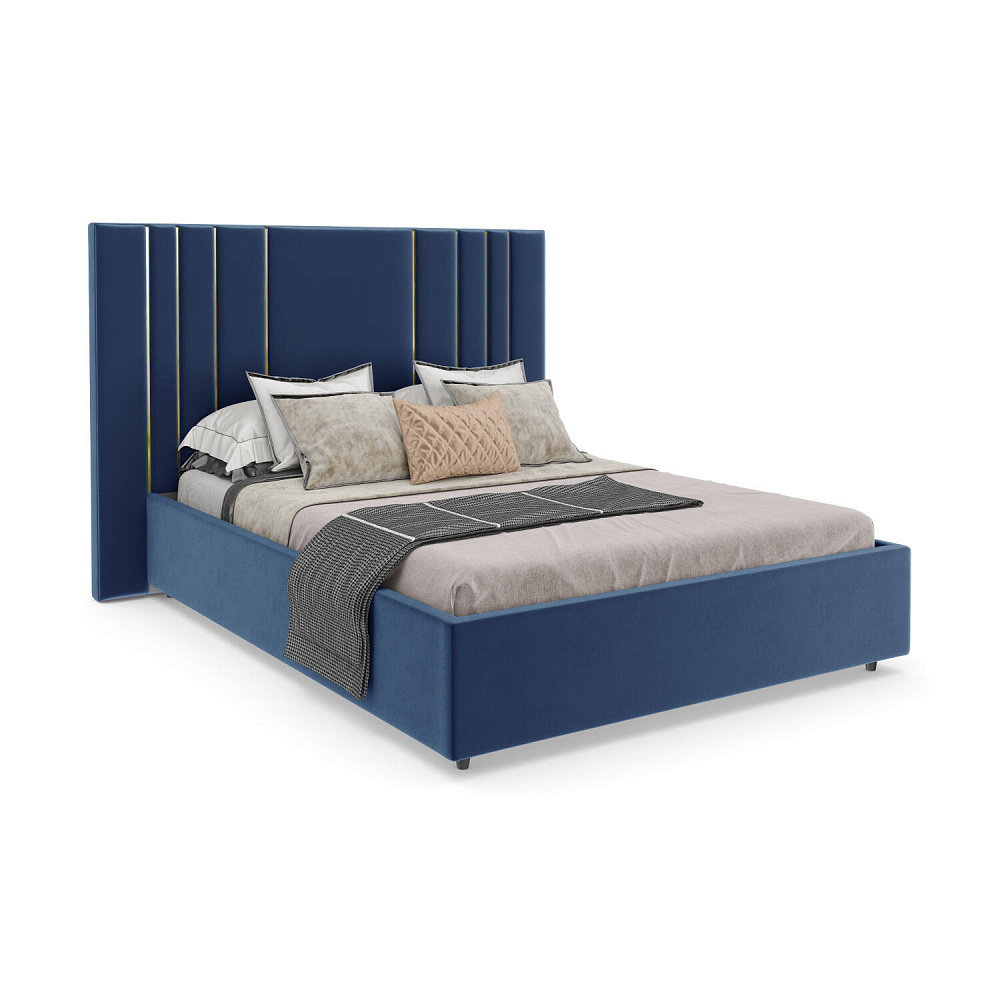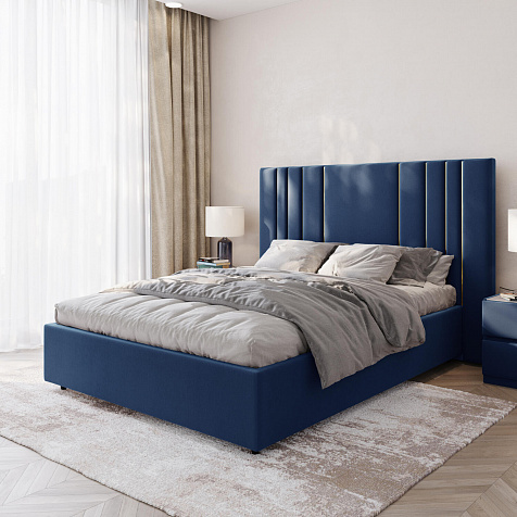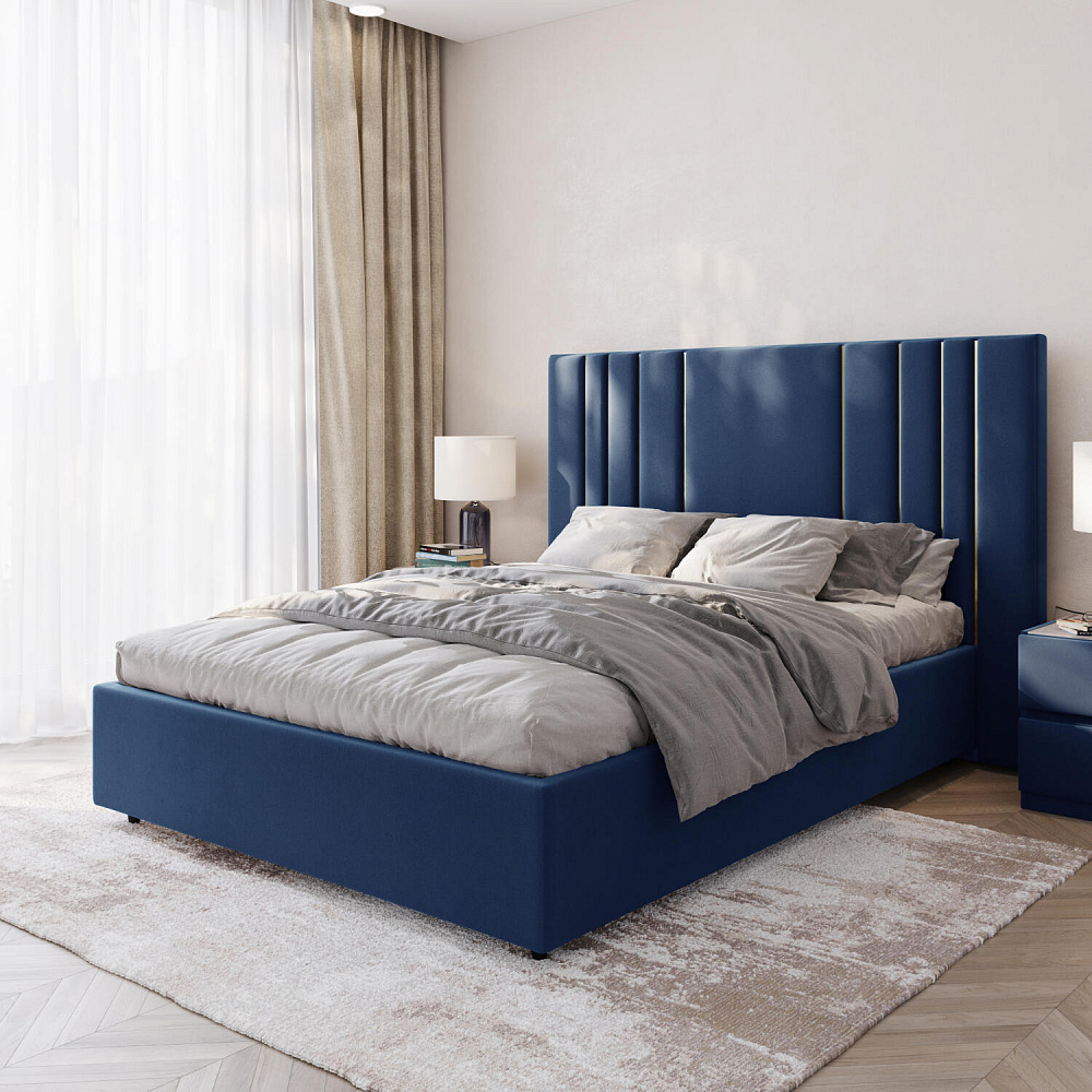 Мягкая кровать «Рания» создана для воплощения смелых интерьерных решений. Высокое изголовье декорировано узором из вертикальных металлизированных вставок, утопающих в изголовье. Под решёткой с подъёмным механизмом предусмотрен вместительный бельевой короб. Надежное основание и правильно подобранный матрас обеспечат необходимый уровень для здорового сна и отдыха.