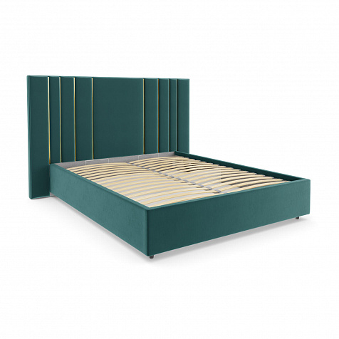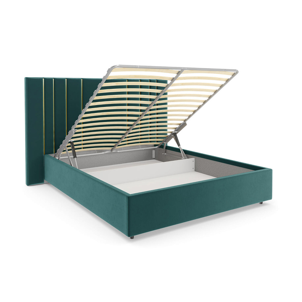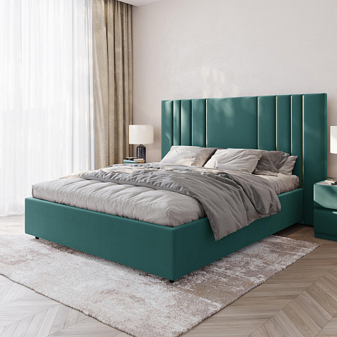 Мягкая кровать «Рания» создана для воплощения смелых интерьерных решений. Высокое изголовье декорировано узором из вертикальных металлизированных вставок, утопающих в изголовье. Под решёткой с подъёмным механизмом предусмотрен вместительный бельевой короб. Надежное основание и правильно подобранный матрас обеспечат необходимый уровень для здорового сна и отдыха.