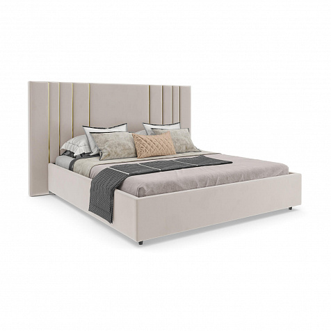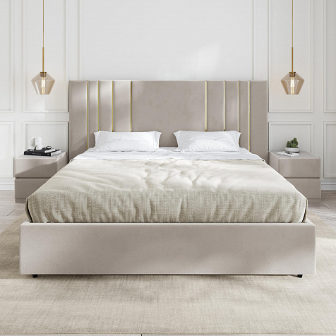 Мягкая кровать «Рания» создана для воплощения смелых интерьерных решений. Высокое изголовье декорировано узором из вертикальных металлизированных вставок, утопающих в изголовье. Под решёткой с подъёмным механизмом предусмотрен вместительный бельевой короб. Надежное основание и правильно подобранный матрас обеспечат необходимый уровень для здорового сна и отдыха.