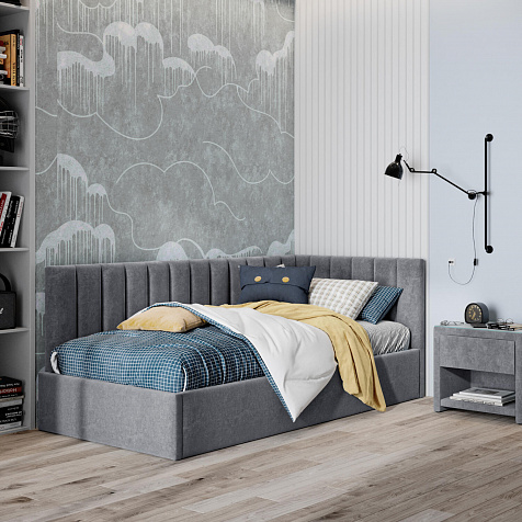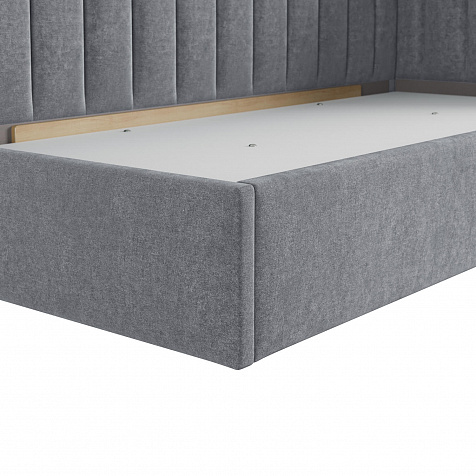 Односпальная кровать «Трино» — сочетание уюта и комфорта в современном дизайне. Спинка Г-образной формы в мягком велюре украшена декоративной вертикальной стежкой, что станет акцентом в интерьере подростковой комнаты.