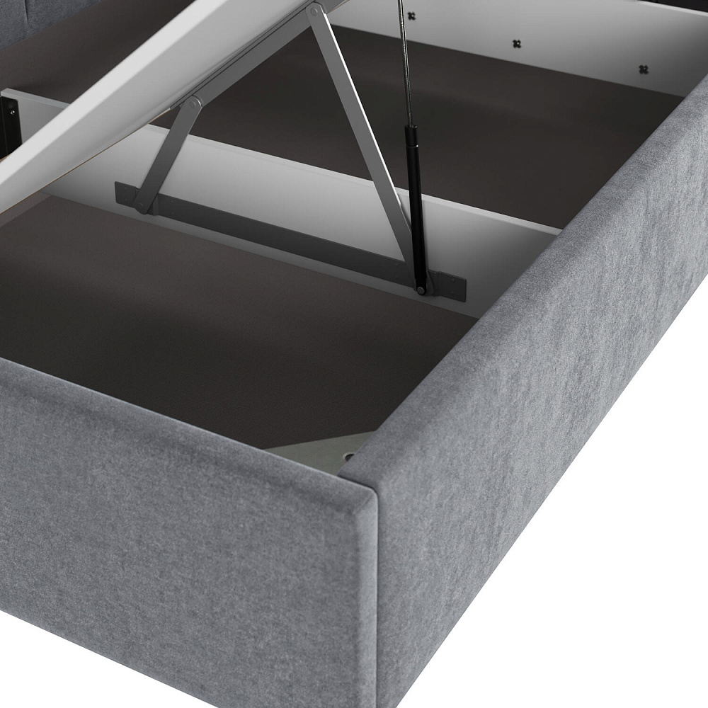 - Удобный доступ к коробу. Механизм легко поднимает и опускает основание кровати вместе с матрасом благодаря газлифтам.